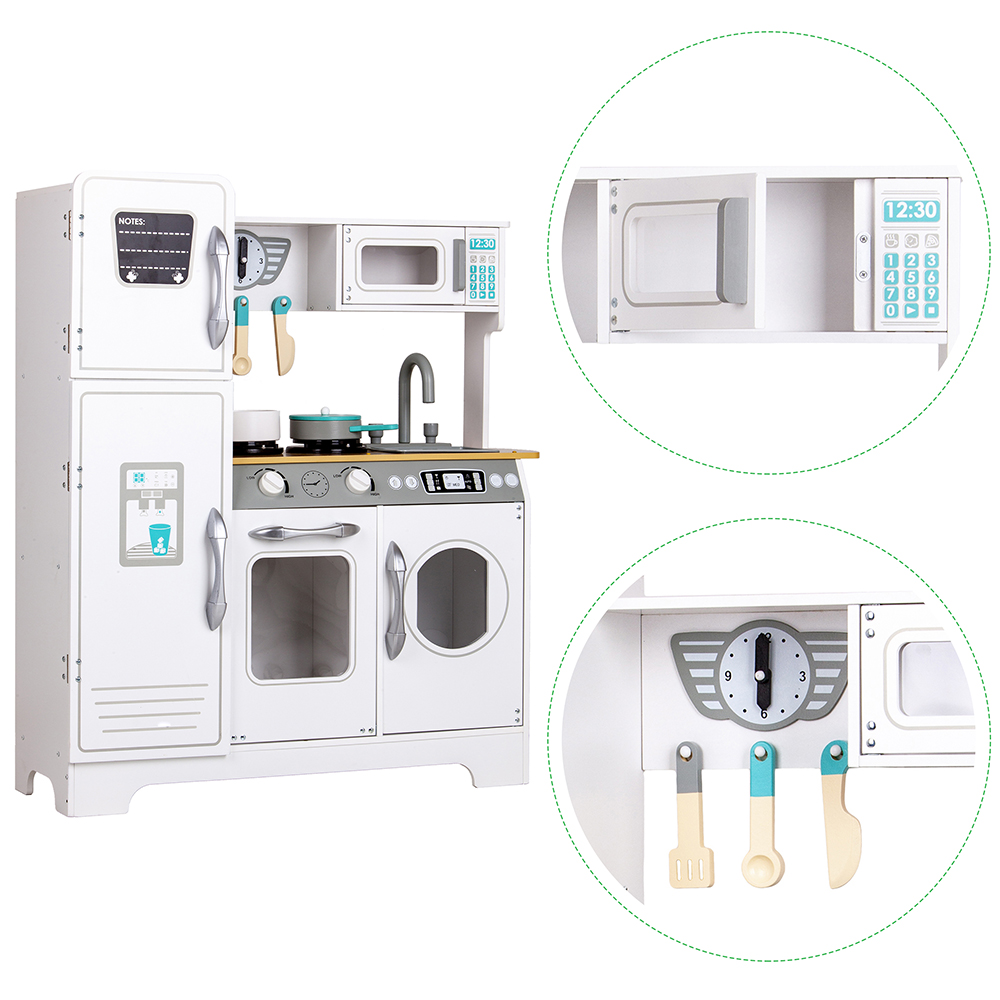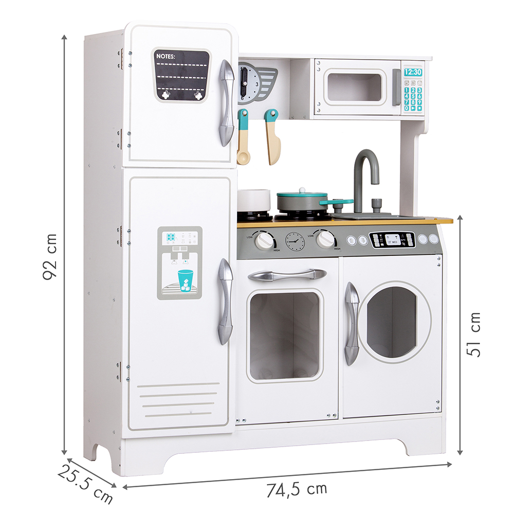 Milzīga balta koka bērnu virtuve no ECOTOYSMilzīga balta koka bērnu virtuve no ECOTOYS