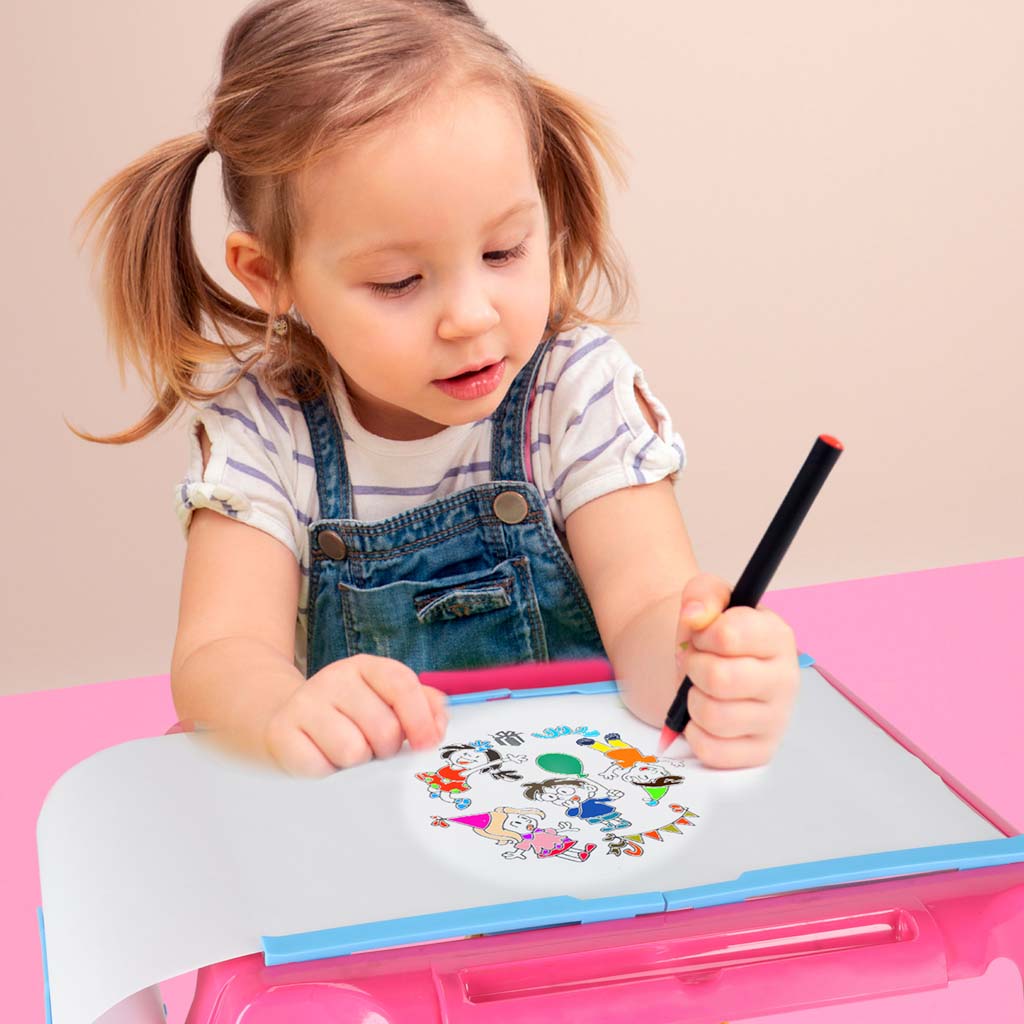 Formu zīmēšanas galds ar projektoru rozā krāsā
