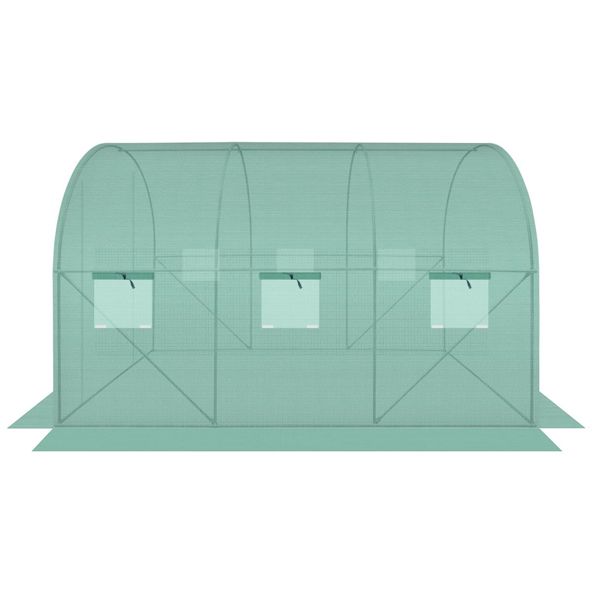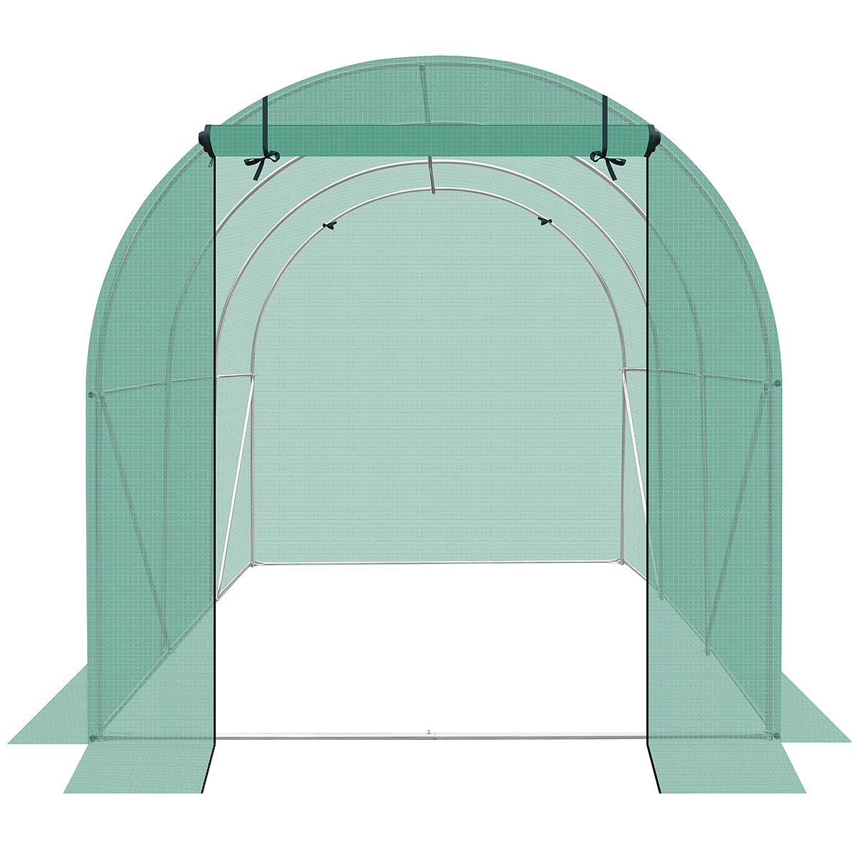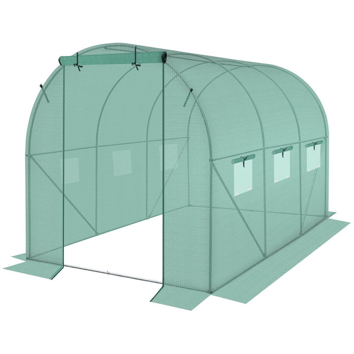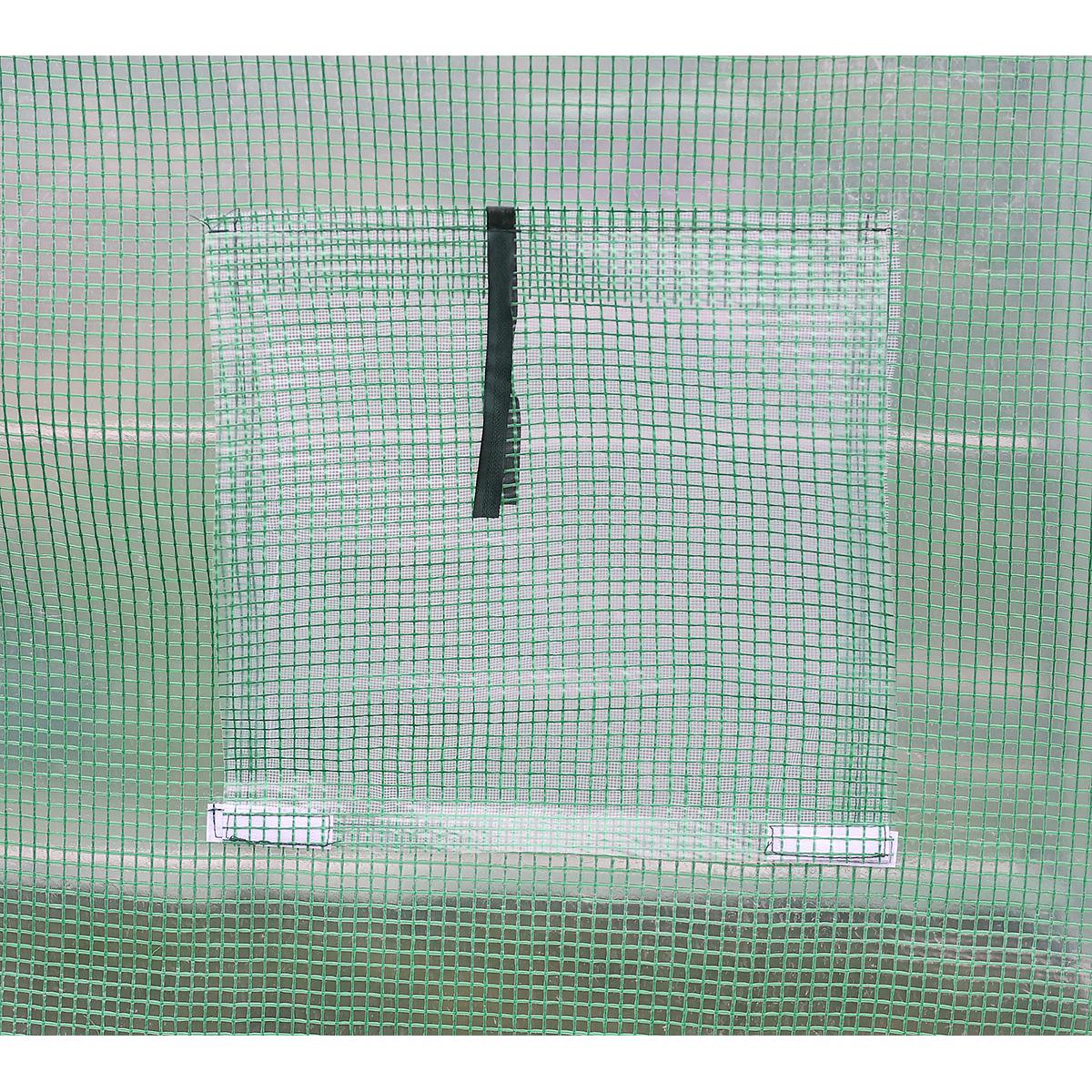 Siltumnīcai ir 6 logi ar moskītu tīkliem un folijas aizkariem, kas pasargā no liekā mitruma, vienlaikus nodrošinot optimālu gaisa plūsmu un pietiekamu apgaismojumu. Tai ir 120 cm platas aizslēdzamas durvis, kas ļaus ērti iziet vai ieiet.