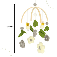 Koka karuselis būs ne tikai jūsu mazuļa rotaļlieta, bet arī skaists bērna istabas rotājums. Lielās puķes un bites kopā ar zaļajām lapām ienesīs interjerā nedaudz burvības un papildus piesaistīs mazuļa uzmanību ar savām interesantajām formām.