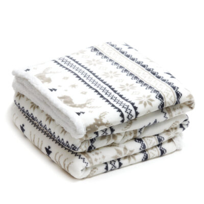 Мягкое на ощупь одеяло Рождественский узор Розовое одеяло с рождественским узором Одеяло BARGOblanket двухстороннее. С одной стороны — розовый фон с белым рождественским узором. Узор представляет собой горизонтальные полосы с повторяющимися мотивами оленей, елок, снежинок и геометрических украшений. С другой стороны одеяла — белый пушистый материал, напоминающий мягкую овчину. Он приятен на ощупь и обеспечивает…