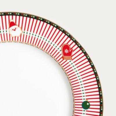 Идеально подходит для рождественского стола Популярные праздничные мотивы Красная и зеленая цветовая гамма Фарфоровая посуда Рождественская фарфоровая тарелка Фарфоровая обеденная тарелка имеет очаровательный дизайн с полосками и популярными рождественскими мотивами — на ней вы найдете елку, Деда Мороза, леденцовую трость или баулы. Это не только практичное блюдо для подачи еды, но и красивое украшение вашей…