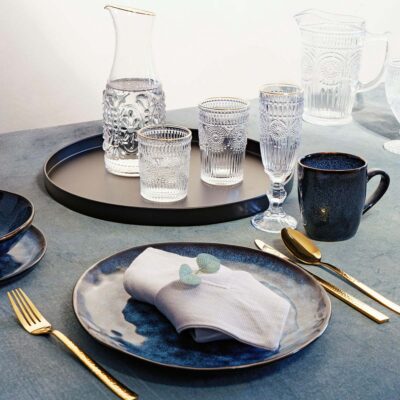 Назначение КувшинKUBBE с золотой крышкой — элегантный аксессуар, который должен присутствовать на столе как каждый день, так и по торжественным случаям. Универсальная эстетика стеклянного изделия позволяет ему вписываться в интерьеры, оформленные в любом стиле — как в минималистическом, любящем простоту, так и в королевских гламурных аранжировках. KUBBE очень практичен — он вмещает 1,8 литра напитка,…