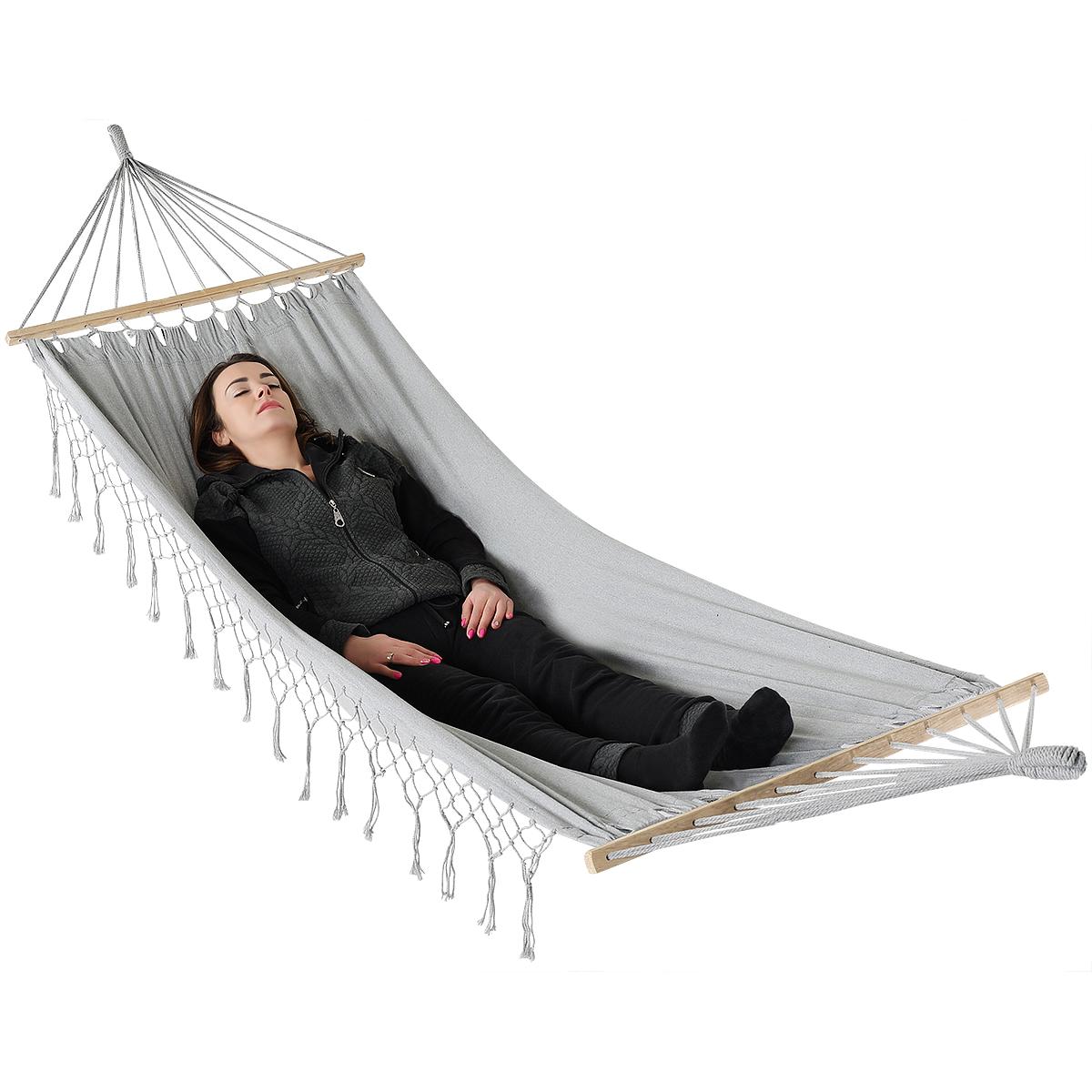 ГАМАК САДОВЫЙ НА 1 ЧЕЛОВЕКА 200Х100 СМ С ПРУТОМ И КИСТОЧКАМИ MIAMI GREY