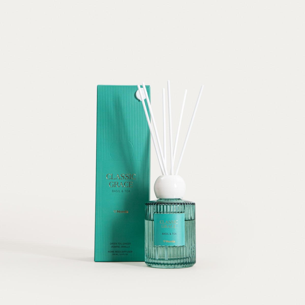 Ароматический диффузор CLASSIC GRACE Basil&Tea 100 мл Головные ноты: апельсин, чай, мята, яблоко Ноты сердца: имбирь, гвоздика, черная смородина, эвкалипт Базовые ноты: жасмин, ваниль