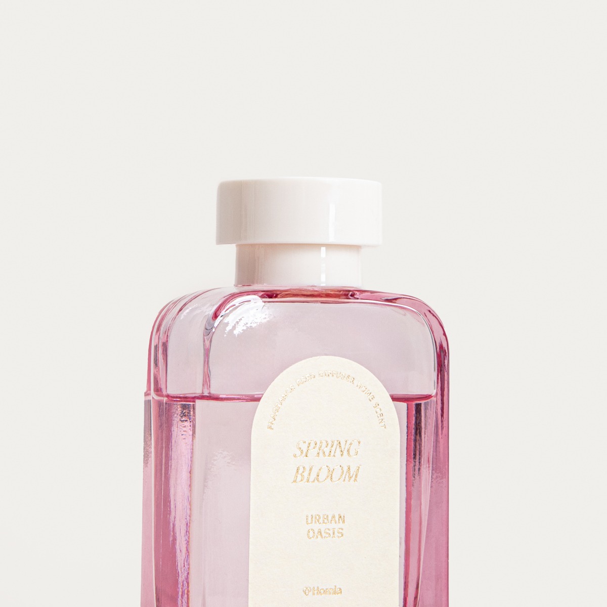 Ароматический диффузор SPRING BLOOM Urban Oasis 100 мл Головная нота (Top): мандарин, листья базилика, цедра лайма Нота сердца (Mid): лаванда, свежие аккорды, цветки лайма Базовая нота (Base): пачули, дубовый мох, цветки апельсина; время выпуска аромата 10 недель