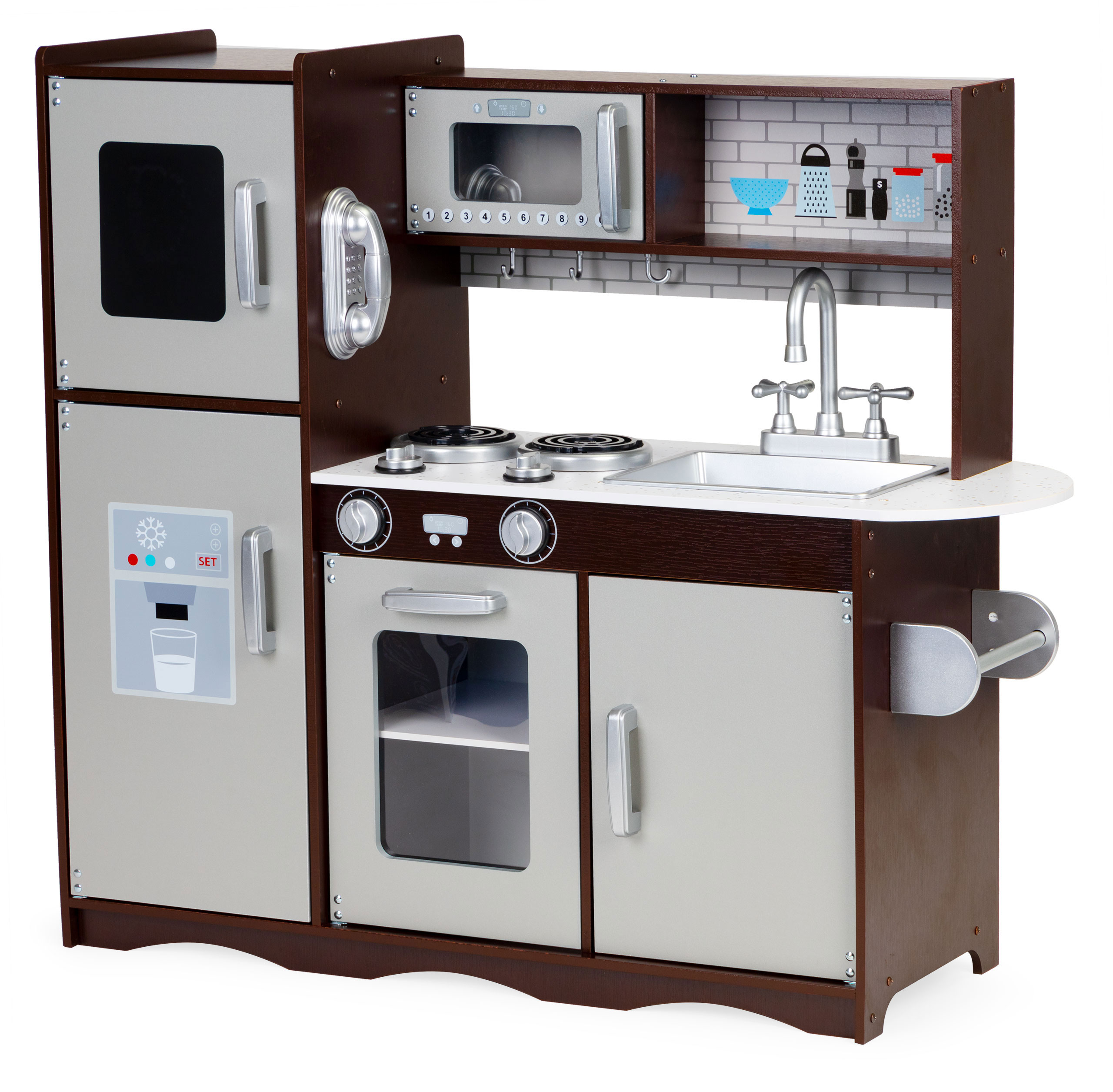 Большая деревянная игровая кухня для детей со шкафами и холодильником, ECOTOYS