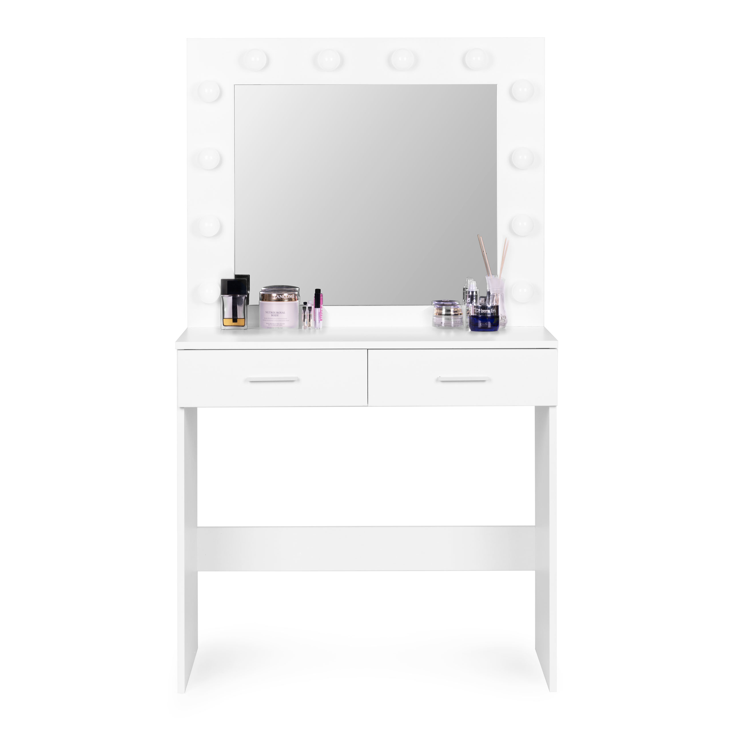 Тщеславие разработано с вниманием к деталям — оно оснащено 12 нежными светодиодными лампочками, которые обеспечивают идеальное освещение для точного нанесения макияжа. Благодаря возможности подключения через USB, пользоваться подсветкой удобно и экономно.