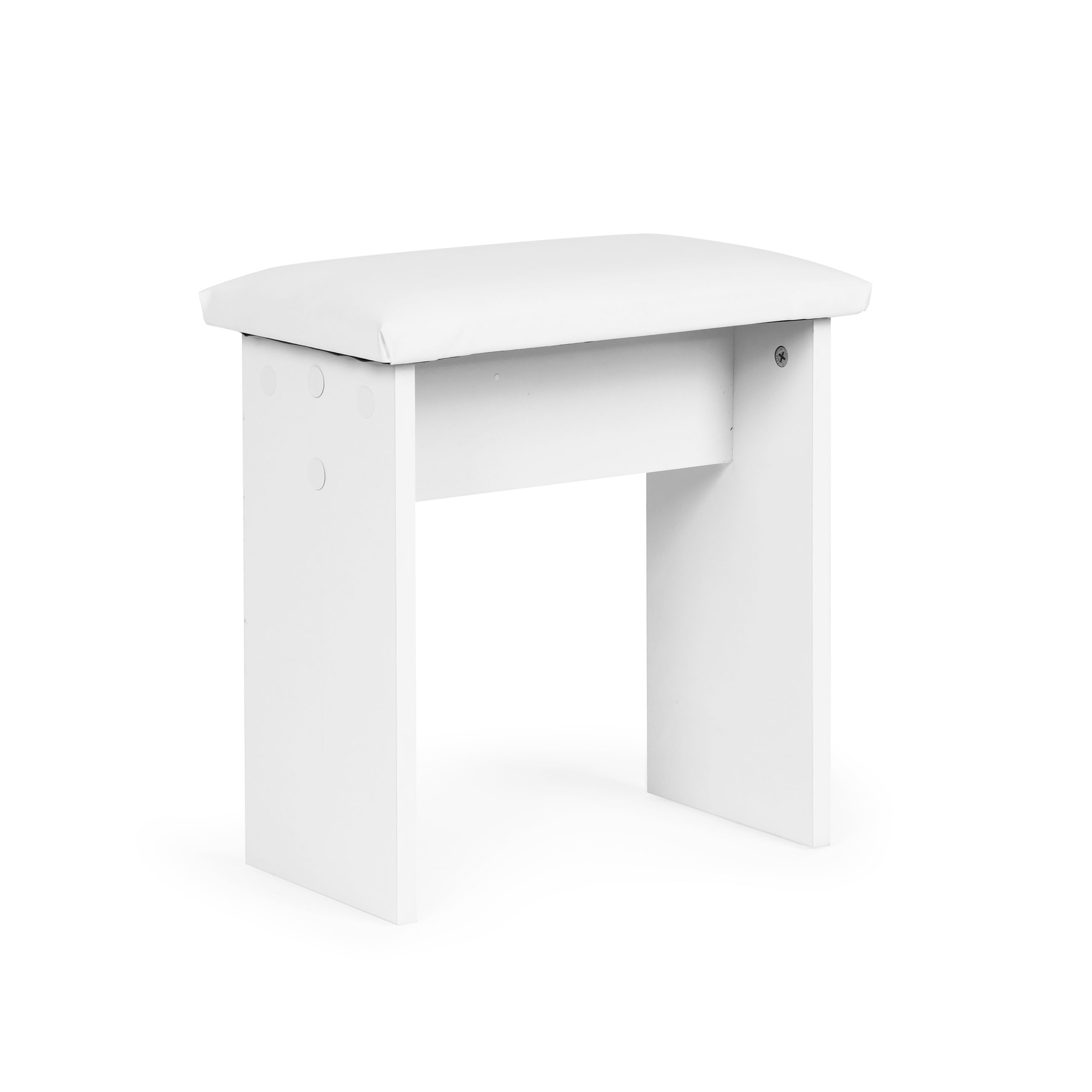 Кроме того, в комплект туалетного столика входит небольшой табурет, который обеспечивает комфорт во время ежедневного ухода за собой. Мебель с удобным сиденьем идеально сочетается со всем набором, добавляя ему функциональности и стиля.