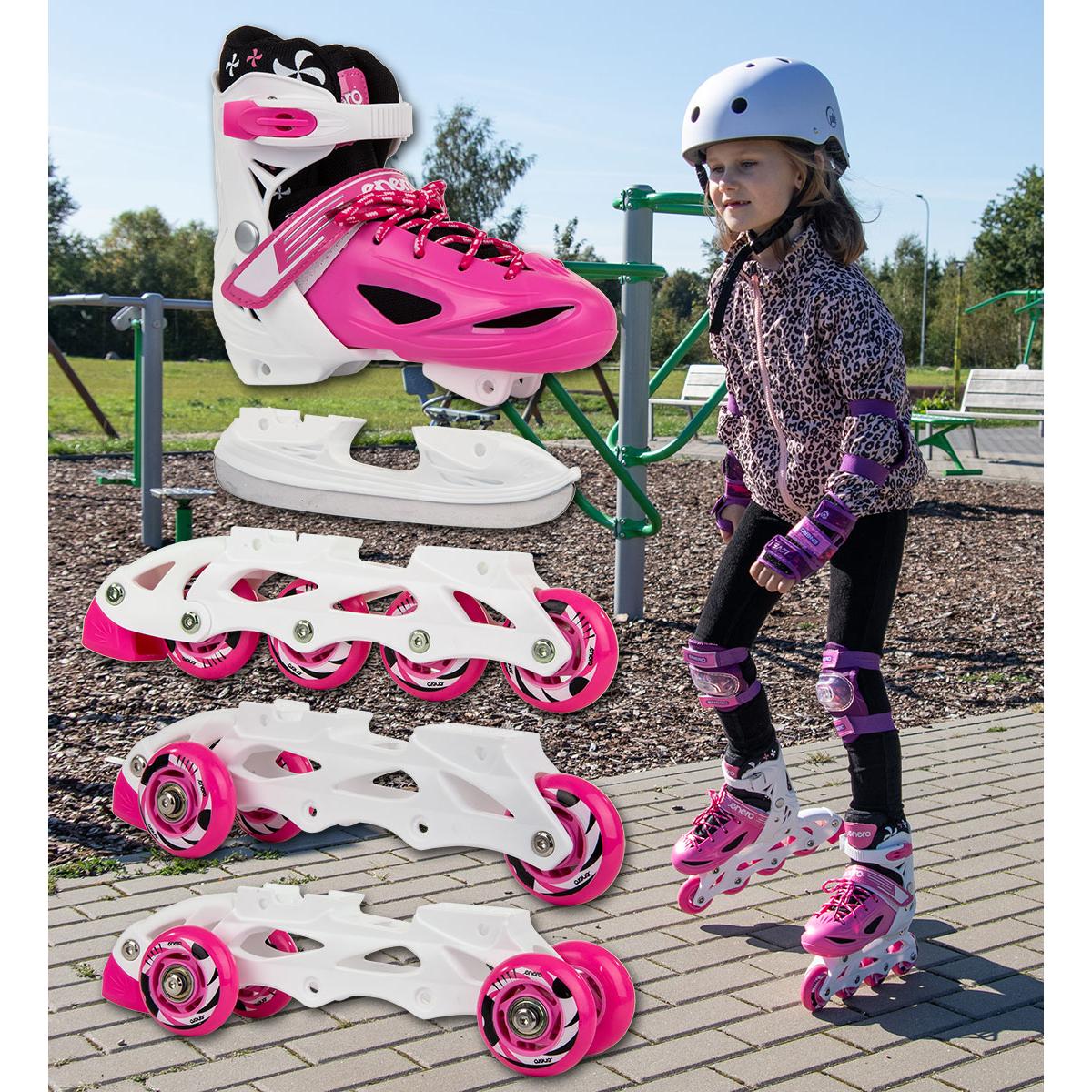 ВЕЛОСИПЕДНЫЕ КОНЬКИ — РОЛИКОВЫЕ КОНЬКИ — 4IN1 ENERO 30-33 РОЗОВЫЙ