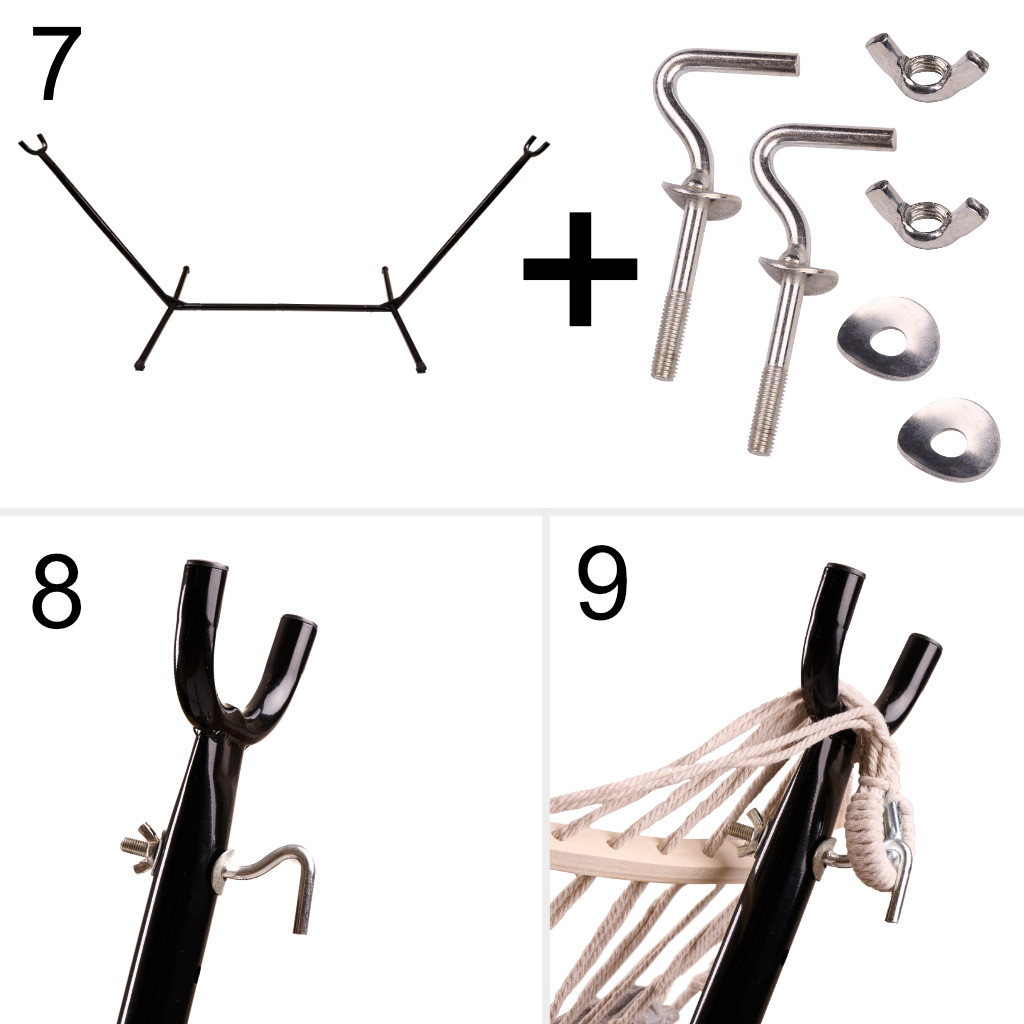 Садовый гамак с каркасом можно установить где угодно — в саду, на террасе или даже на балконе. Полная свобода размещения без сверления и комбинаций