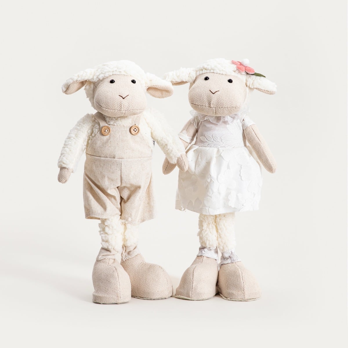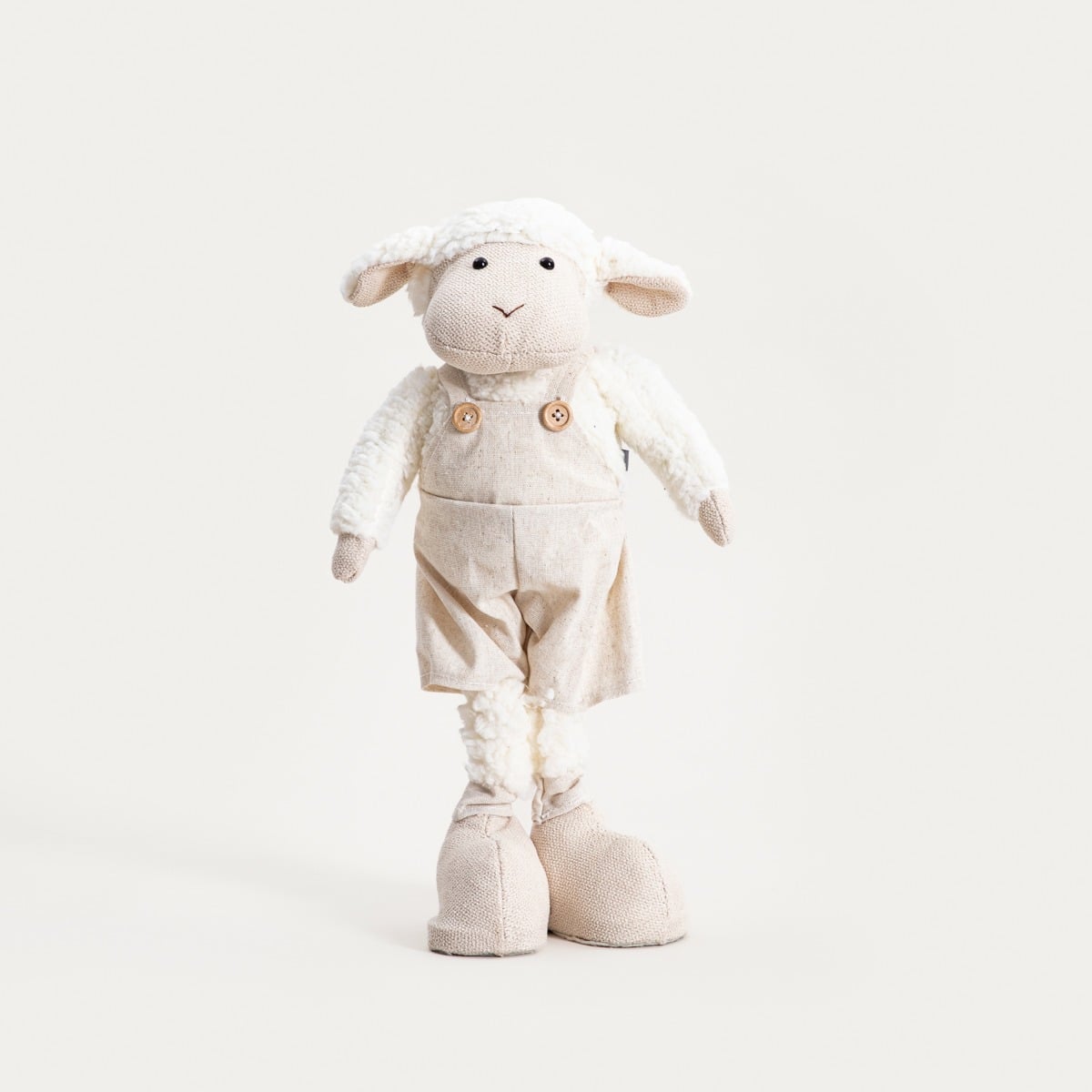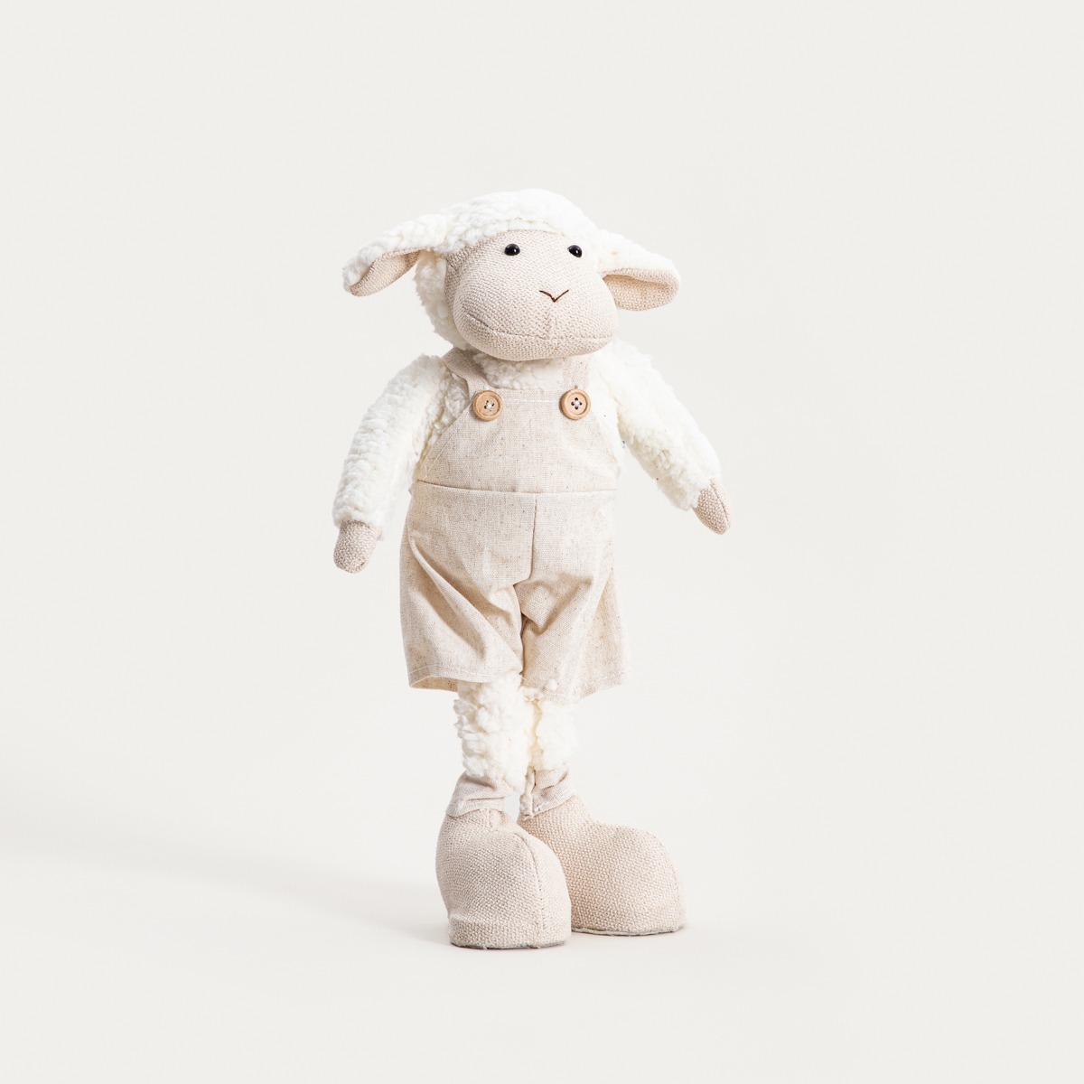 Гном KOOVIS — очаровательное украшение в виде стоящего барашка, привлекающее внимание своим мягким, текстильным силуэтом и изысканными деталями. Светлые брюки на лямках и тонкие аксессуары придают ему легкий, дружелюбный характер. Фигурка идеально подходит в качестве пасхального украшения, но благодаря нейтральным цветам и универсальной форме она также впишется в весенние композиции на протяжении всего сезона.