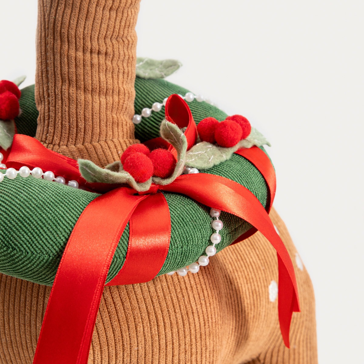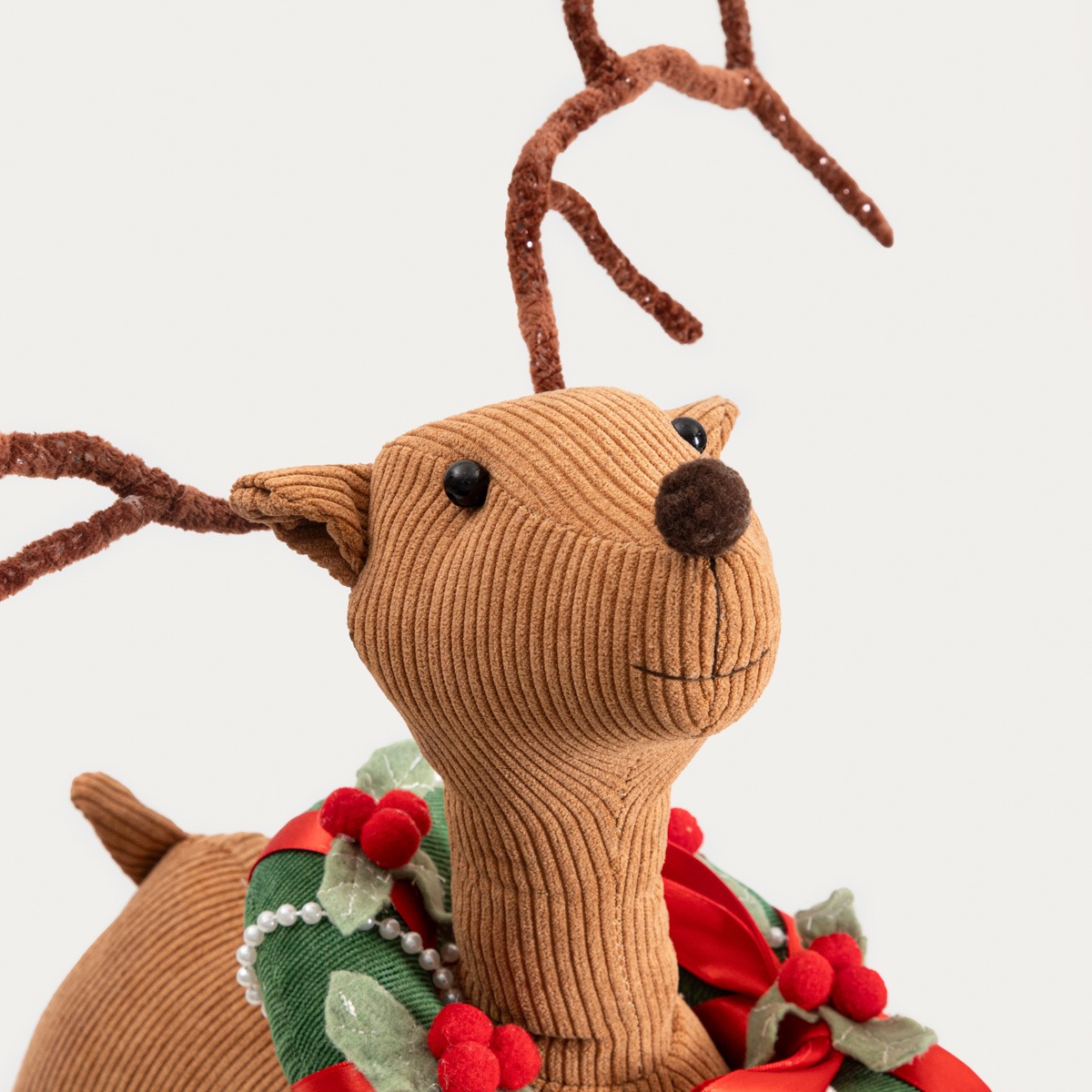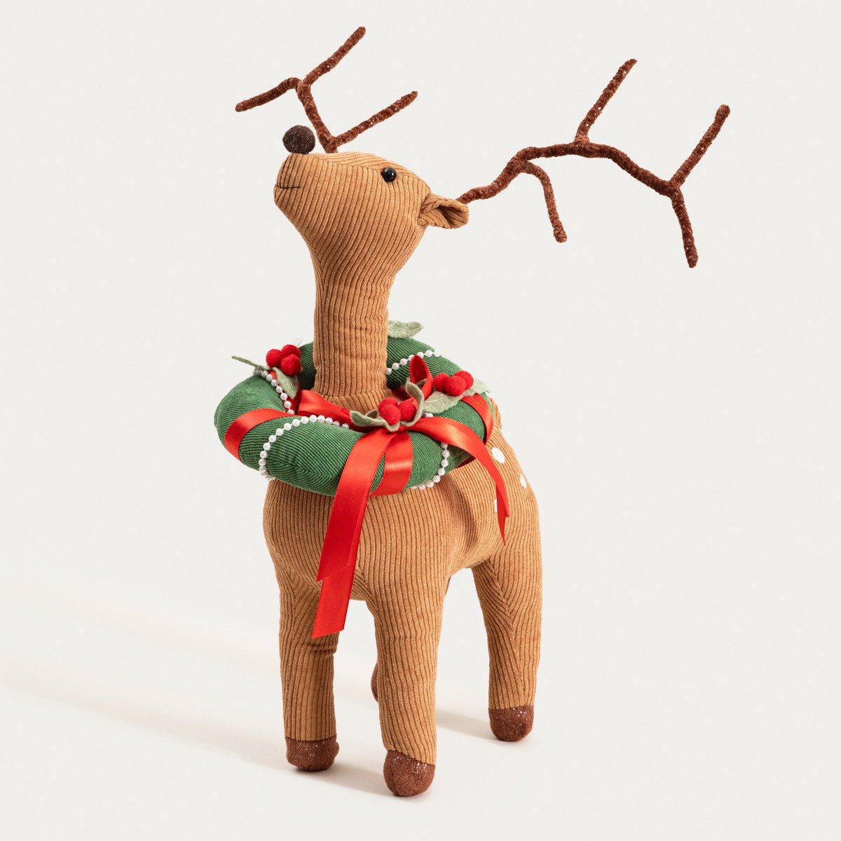 Олень MAZE — это рождественский гном, который согреет любую рождественскую композицию. Уютный и очаровательный, он станет прекрасным дополнением к зимнему декору вашей гостиной, спальни или прихожей. Тщательно сшитый из модной вельветовой ткани, он впечатляет своими деталями — глазами-пуговицами, большим носом, пришитыми клешнями и яркой рождественской гирляндой, надетой на шею фигурки.