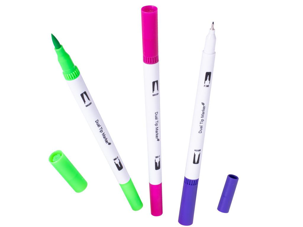 Каждый маркер имеет два наконечника на обоих концах — один конец представляет собой тонкое перо шириной 0,4 мм для точного конспектирования и письма, а другой — маркер шириной 1-2 мм для быстрого покрытия больших участков бумаги!