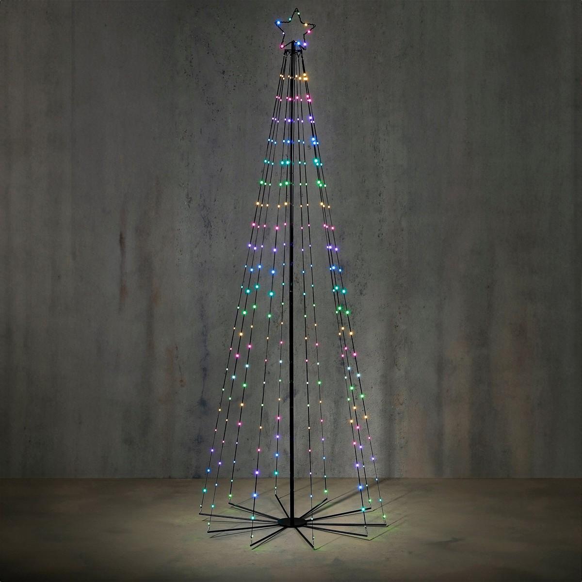 Декоративная елка LUCA RGB 230 LED 240 см — настоящая звезда рождественского декора: высокая, красочная, управляемая с помощью пульта дистанционного управления, чтобы вы могли наслаждаться волшебным светом без усилий.