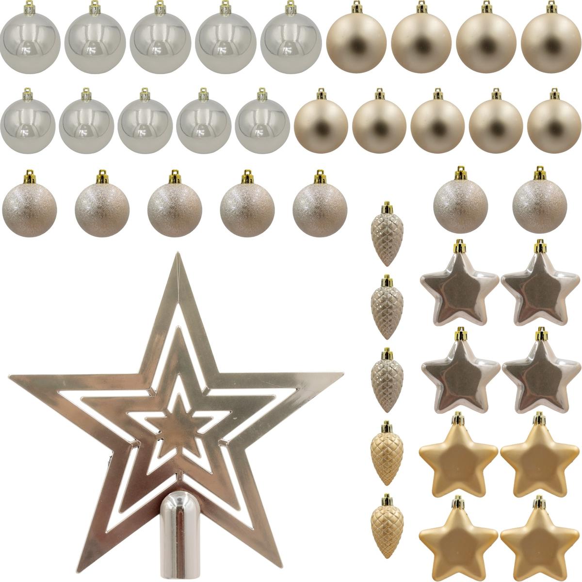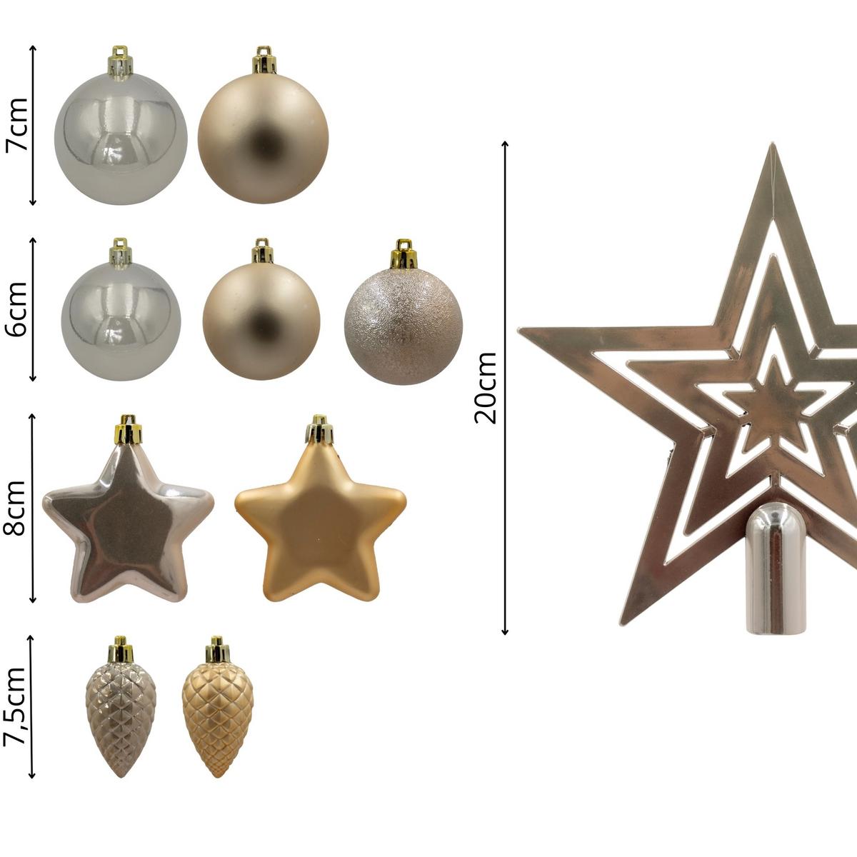 - В наборе 40 баулов одного цвета и разной фактуры и верхушка в виде звезды