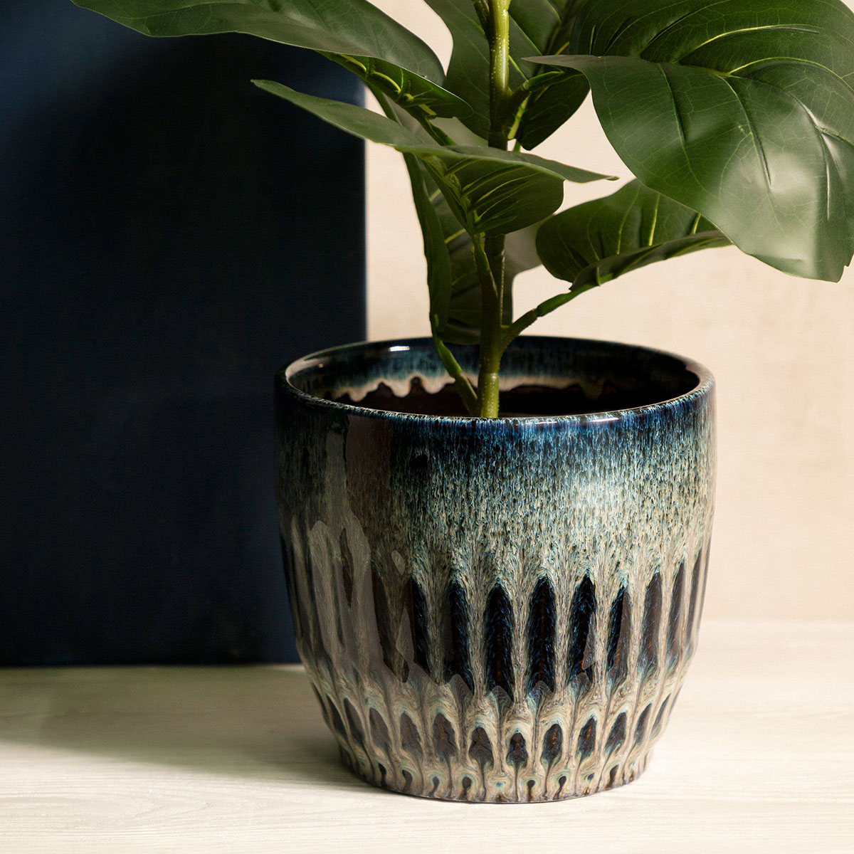 Обеспечьте красивую обстановку для ваших растений с помощью крышки для цветочного горшка HOMLA OASIS. Она отличается красивой цветовой гаммой, в которой переплетаются различные оттенки синего — от насыщенного темно-синего до нежно-голубого. Дополнительным декоративным акцентом является вертикальное тиснение, которое вносит разнообразие в гладкую поверхность крышки.
