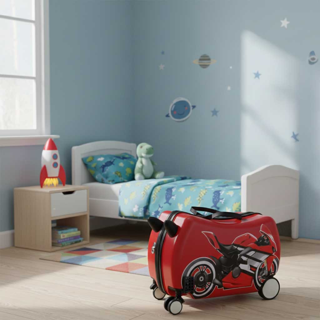 Чемодан-мотоцикл — динамичный дизайн придает ему энергию, выделяет из толпы и отлично подходит для маленьких любителей транспортных средств