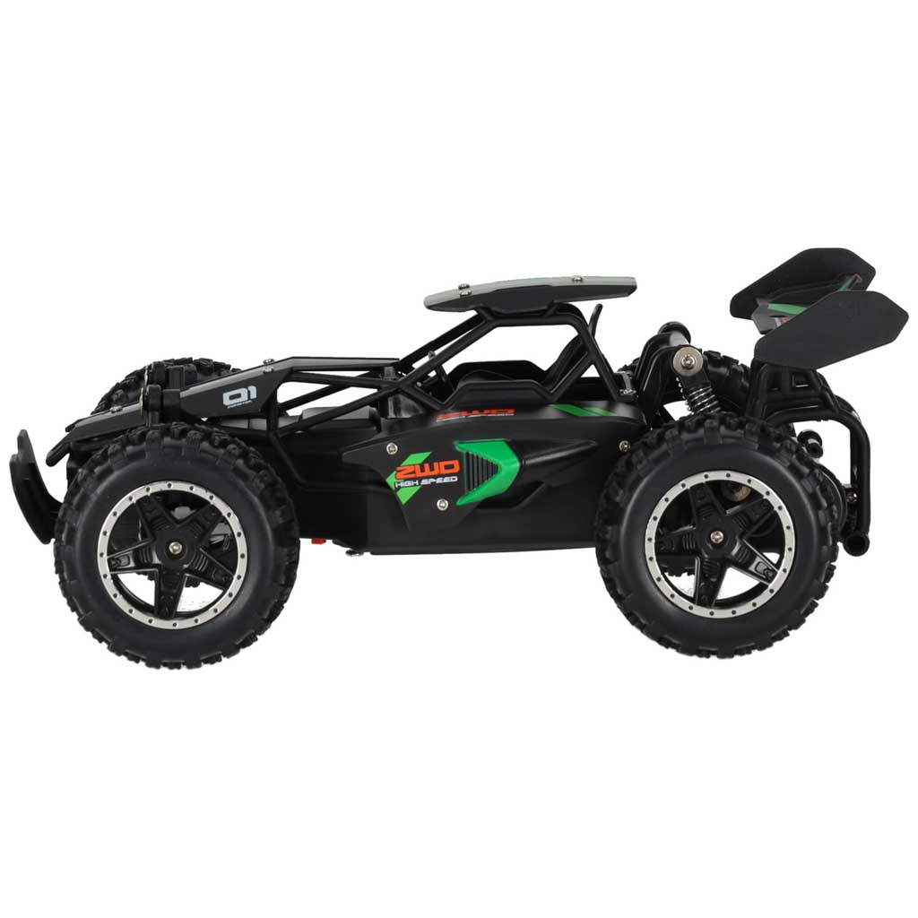 RC-машина с удобным контроллером на батарейках — развлечение для детей и взрослых. Модель очень быстро разгоняется — при движении она достигает скорости около 18 км/ч. Она быстро реагирует на движения контроллера, двигаясь вперед-назад и поворачивая в сторону.