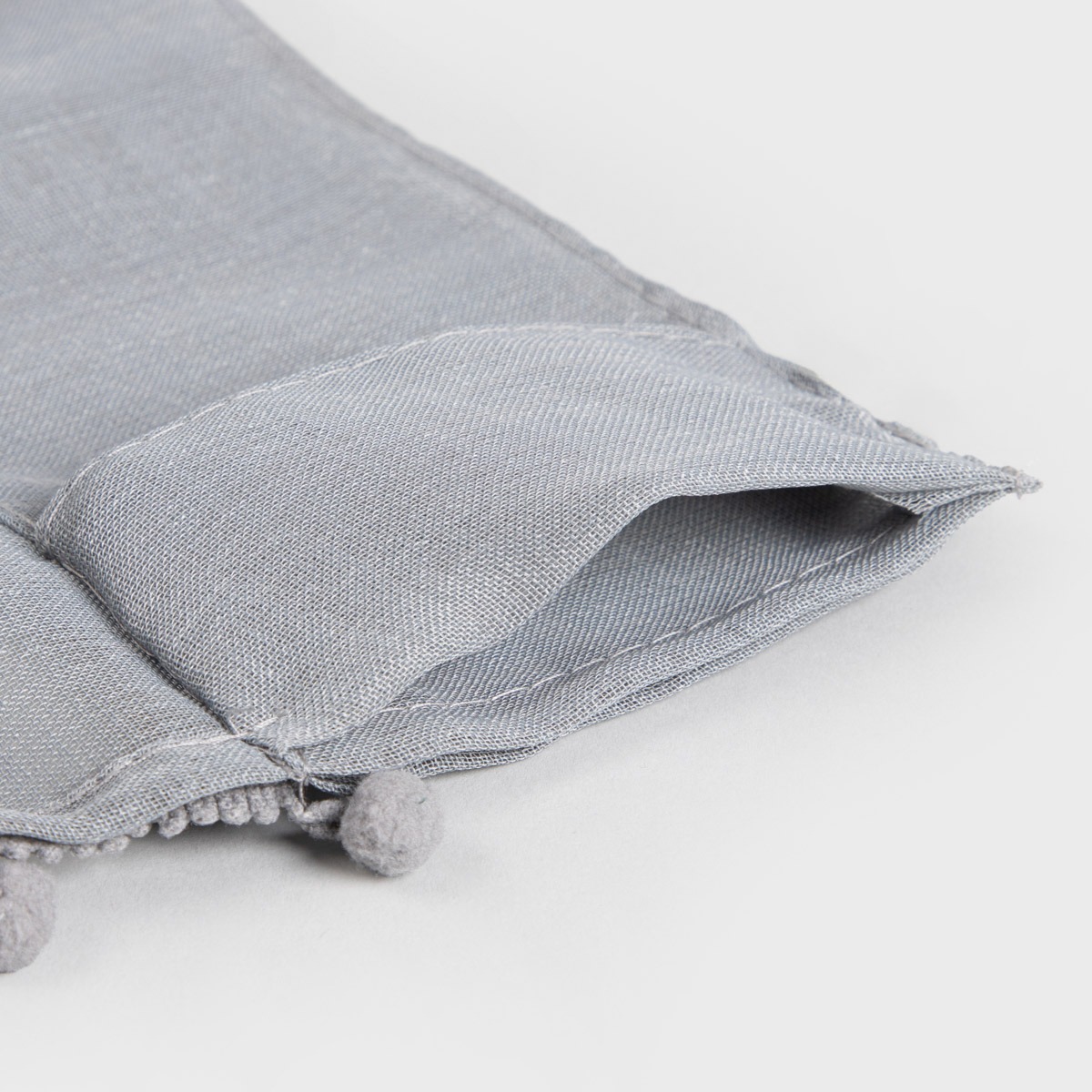Серая штора с помпонами 140 x 250 см