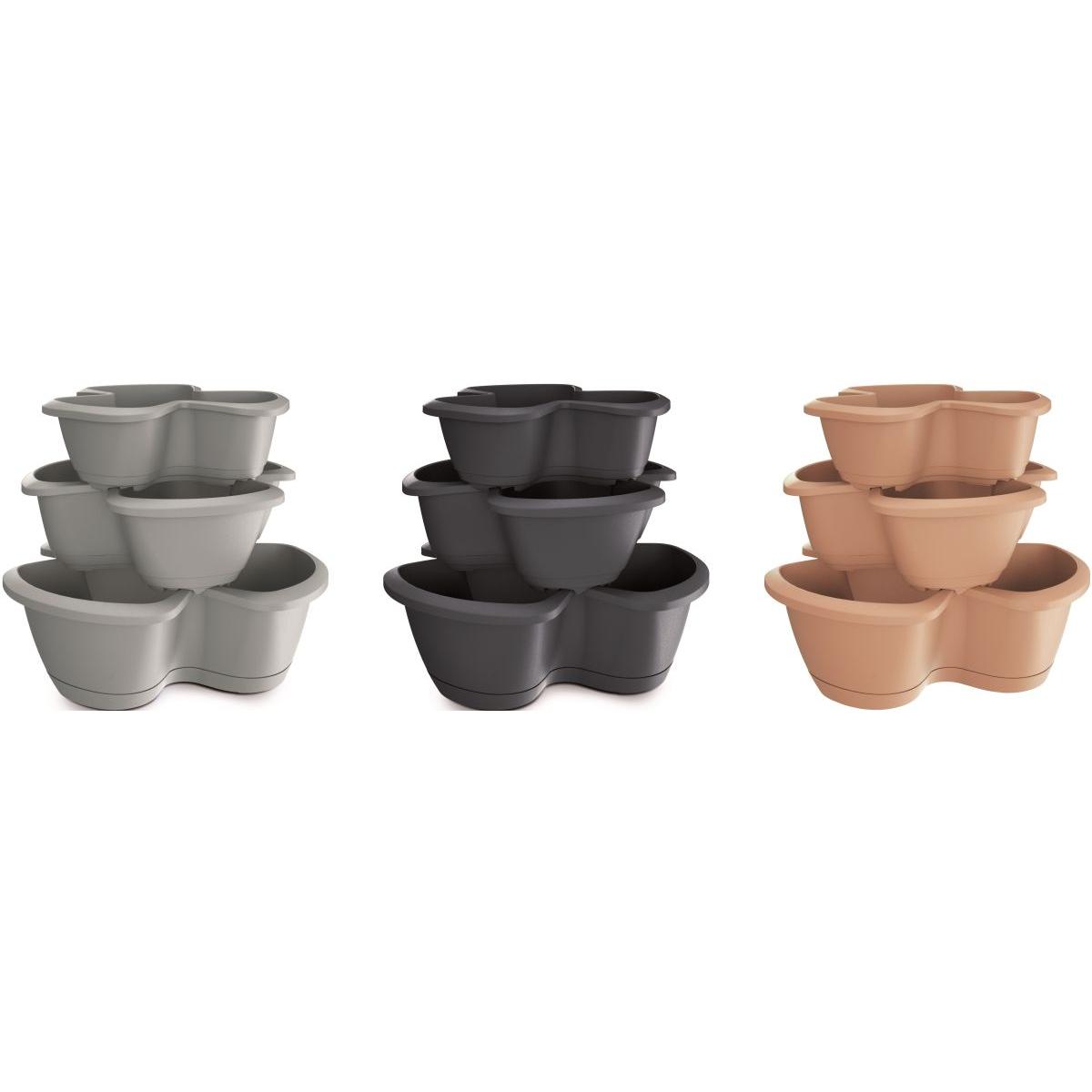 • Набор состоит из 4 частей: 3 цветочных горшка, 1 подставка