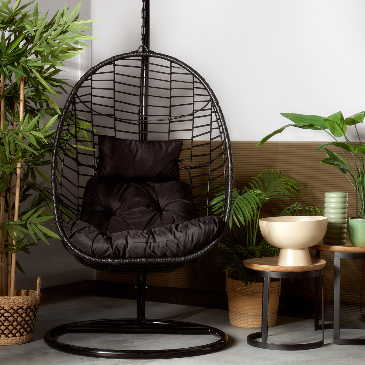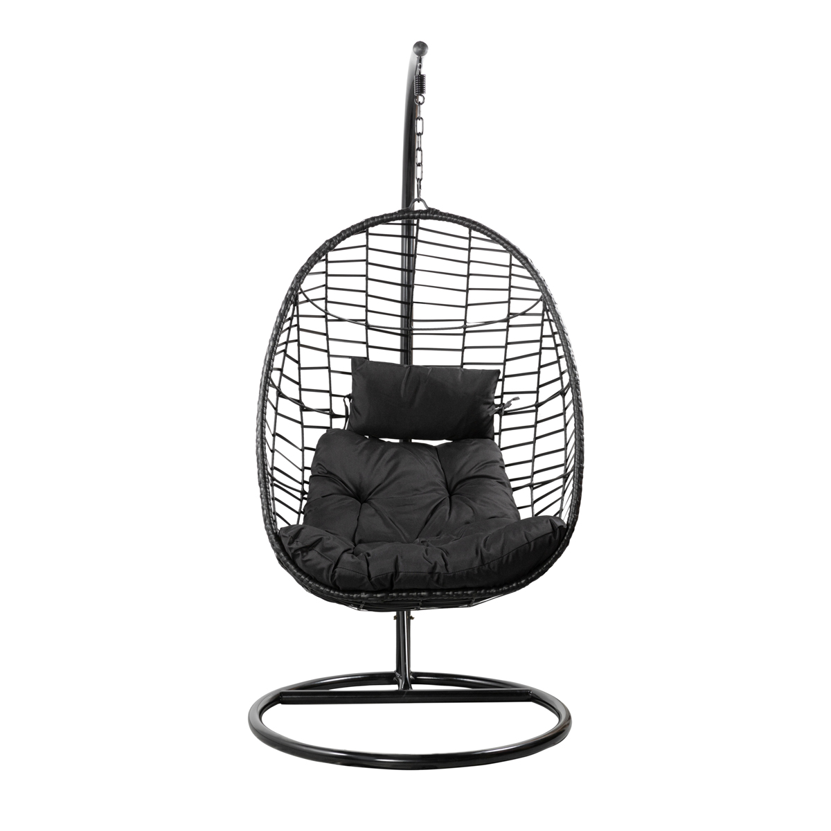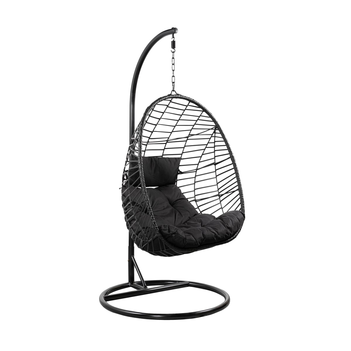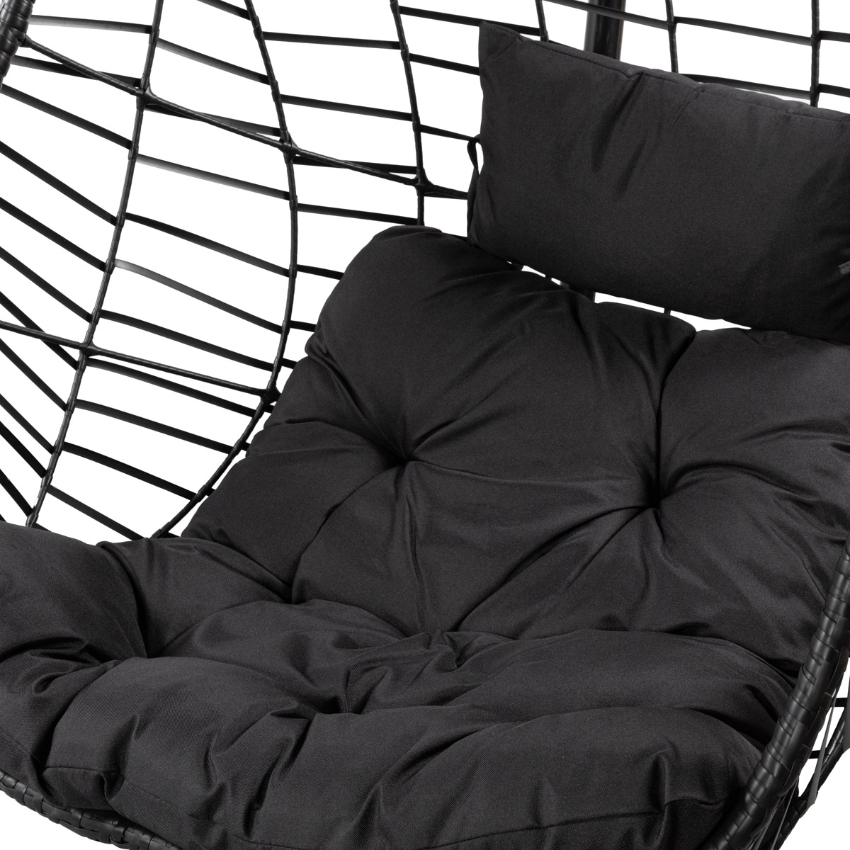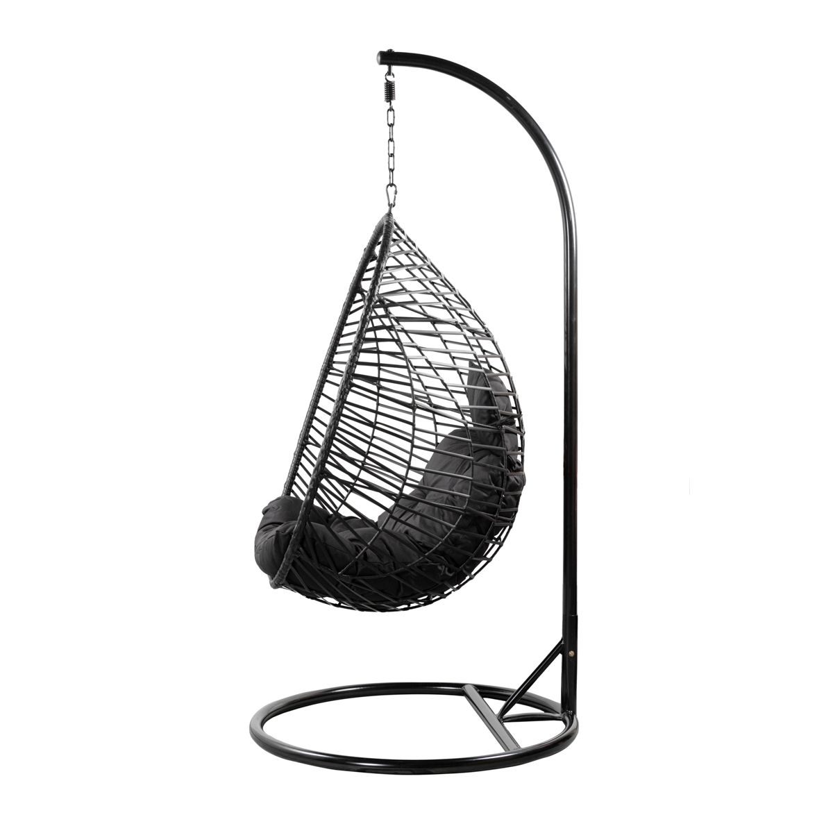 Черное подвесное кресло для сада с подушками