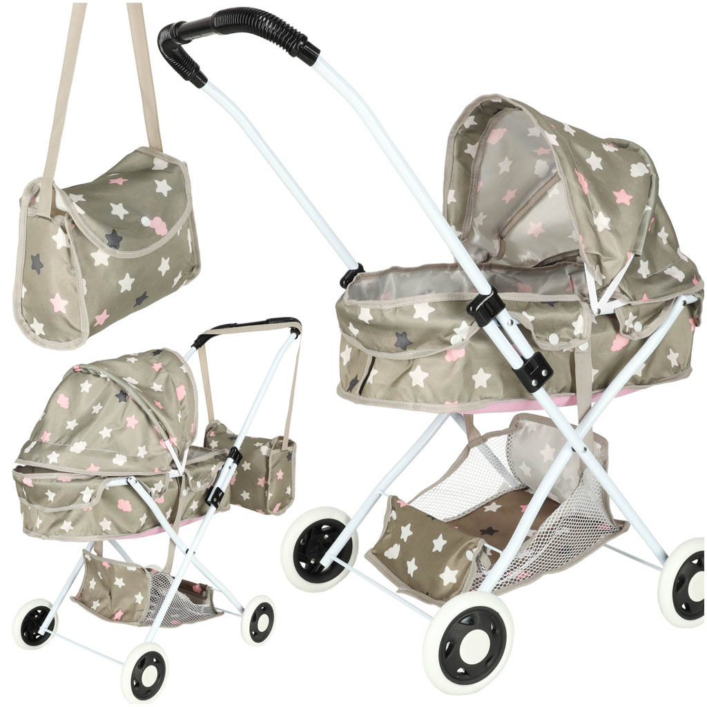 Коляска для кукол гондола глубокая + сумка звезды