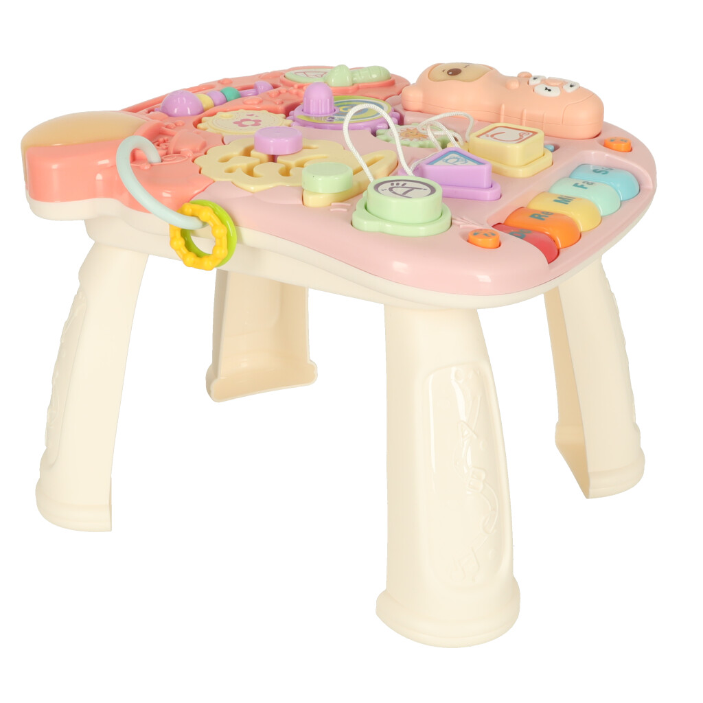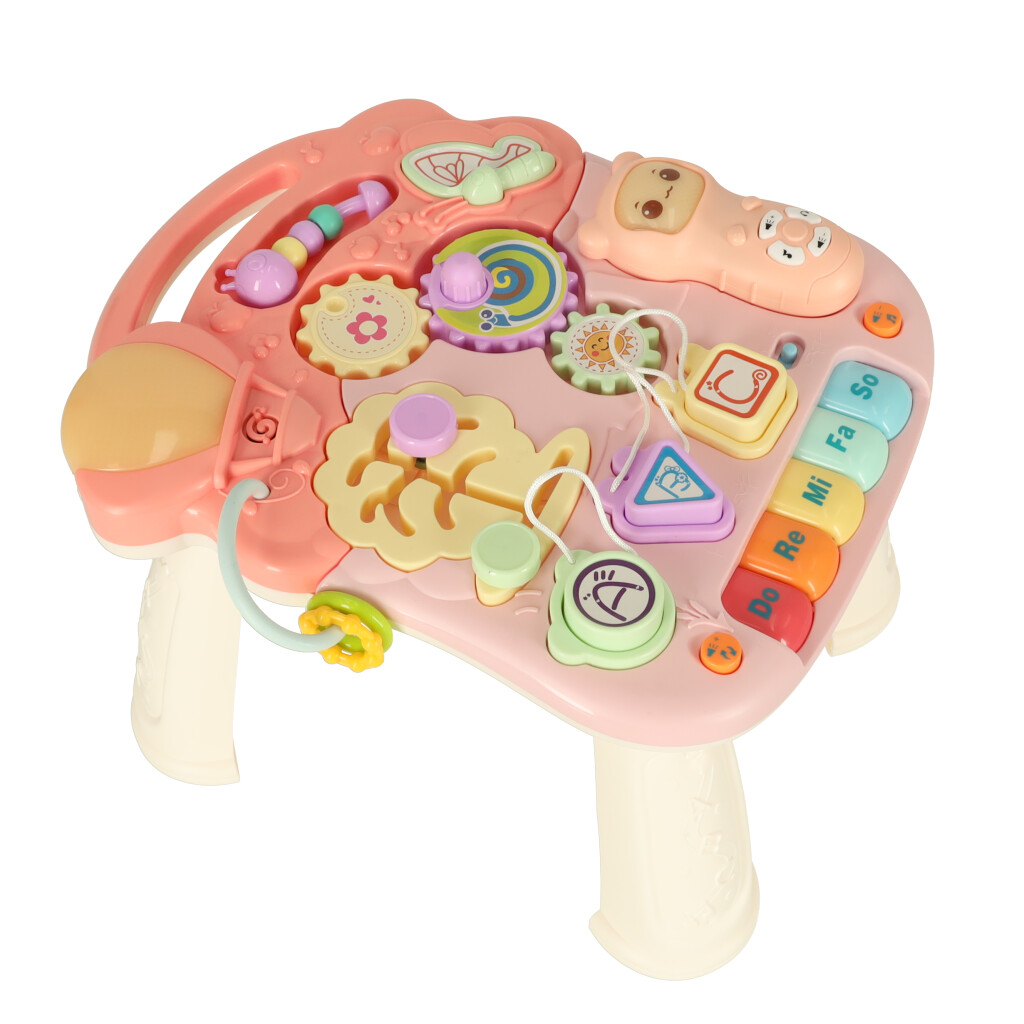 Интерактивный столик подойдет для чуть более опытного ребенка — малыш сможет стоять за столиком и играть с многочисленными элементами, удовлетворяя свое любопытство.
