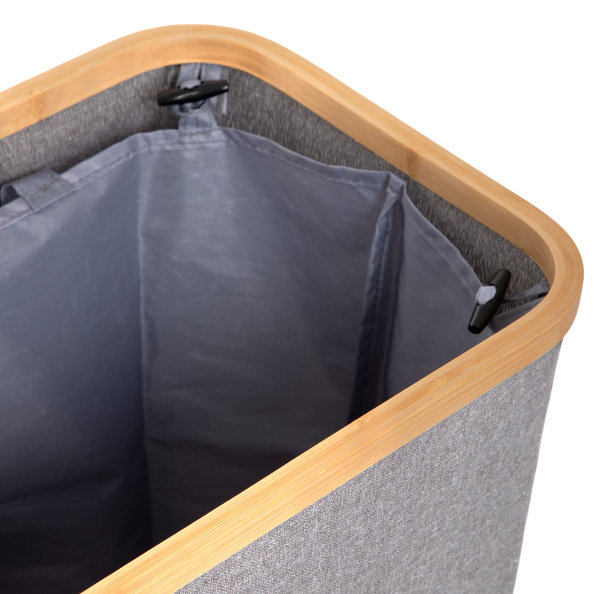 Корзина для белья NELLIE — это не только практичный предмет домашнего обихода, но и стильное дополнение к вашей ванной комнате или спальне. Современный дизайн, обусловленный сочетанием серого цвета и теплых древесных акцентов, делает ее идеально презентабельной и прекрасно дополняет ваш декор. Запирающаяся крышка скрывает содержимое, поэтому в комнате царит порядок и ничто не нарушает гармонию декора.