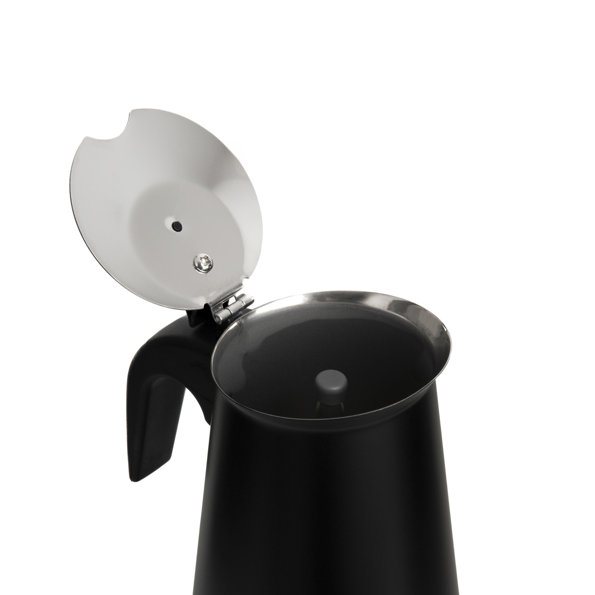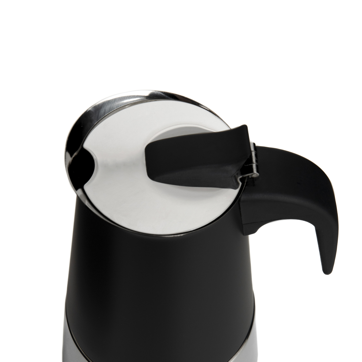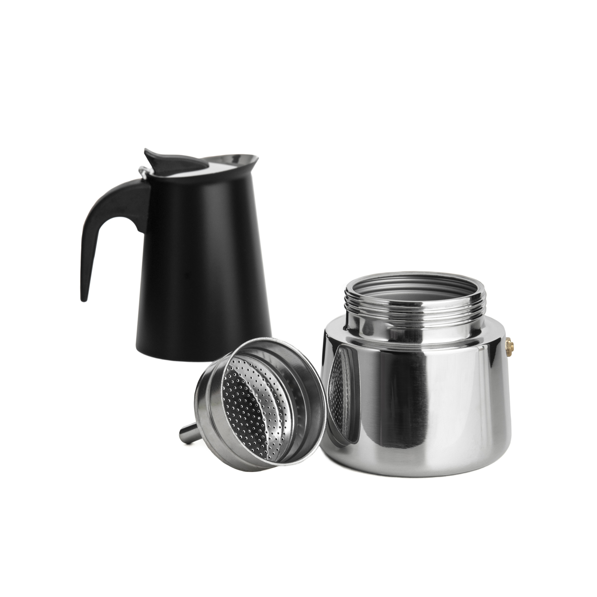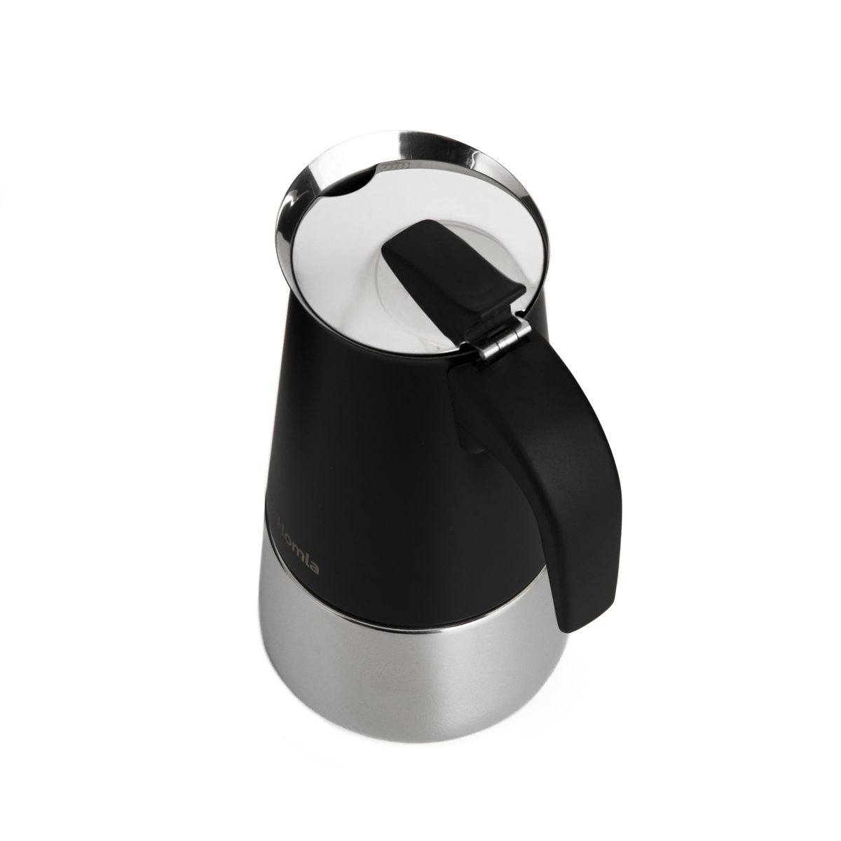 Кофеварка изготовлена из высококачественного пластика, который характеризуется отличной прочностью и устойчивостью к царапинам. Нижняя часть выполнена из нержавеющей стали, которая отлично проводит тепло, гарантируя равномерное и быстрое приготовление.