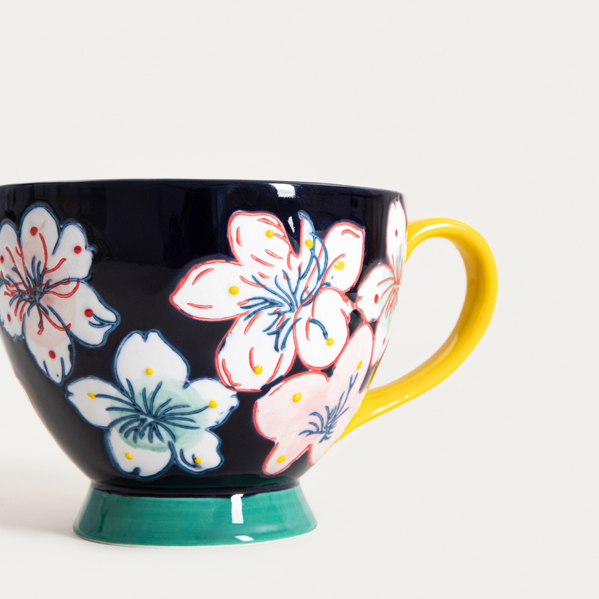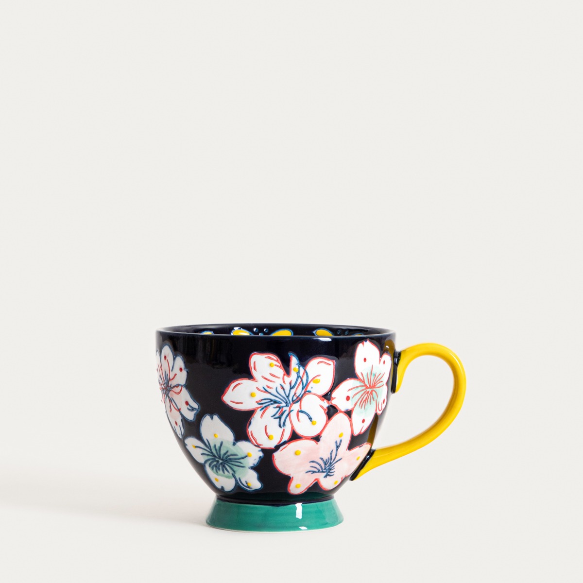 Иногда достаточно одной детали, чтобы сделать повседневный момент с любимым напитком особенным. Кружка SALVA впечатляет своим цветочным мотивом, нанесенным вручную, который контрастирует с темно-синим фоном и привносит энергичный штрих в сервировку. Кружка объемом 400 мл— идеальный сосуд для щедрой порции любимого горячего напитка. Каждая кружка имеет немного другой рисунок, что делает ее маленьким, утилитарным произведением искусства.