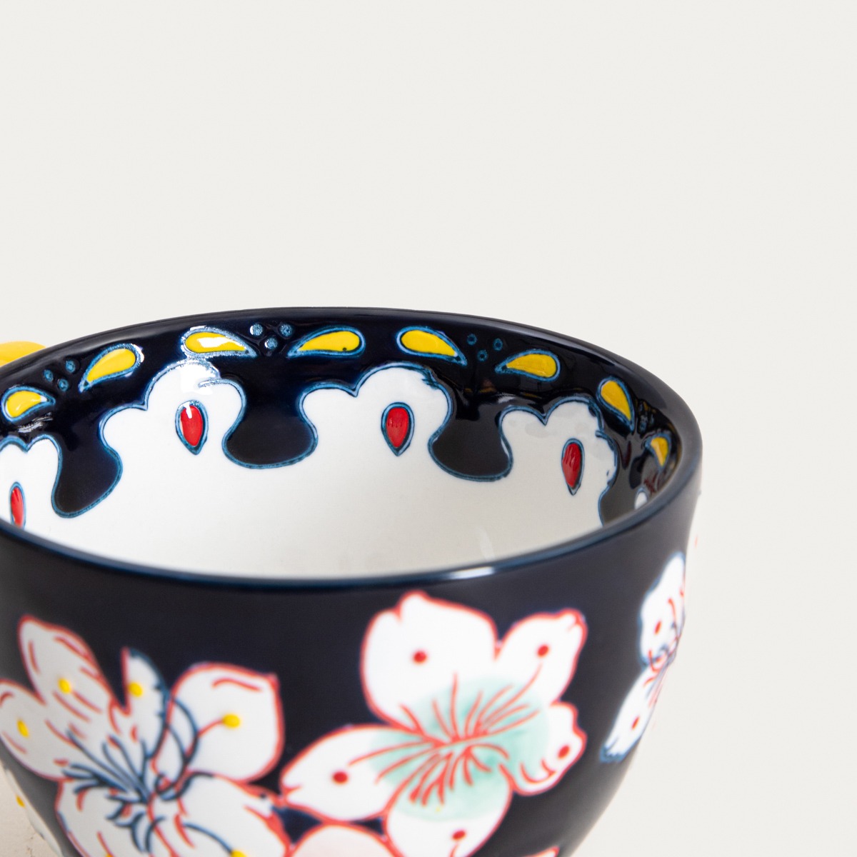 Ручная роспись делает каждый дизайн уникальным, и каждое изделие обладает своим собственным характером. Красочные детали и контрастное ушко подчеркивают декоративный стиль сосуда.