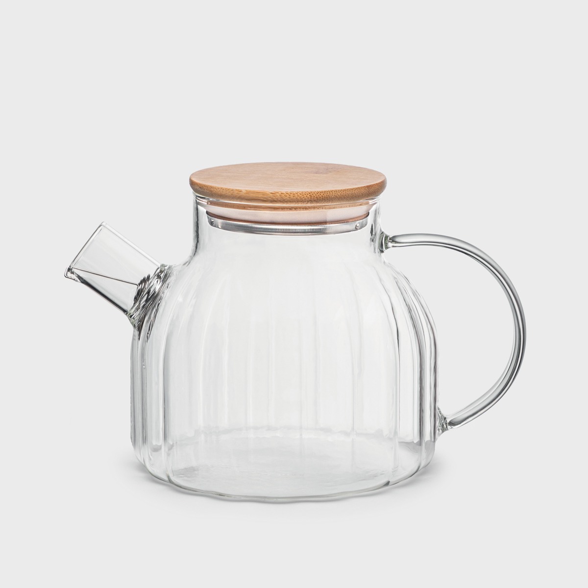 Кувшин изготовлен из высококачественного стекла, а крышка — из натурального бамбука с силиконовым уплотнителем.