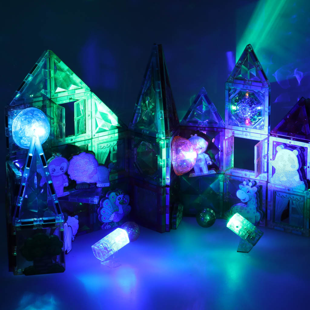 В кирпичи встроены магниты, которые позволяют легко соединять и разъединять детали без применения силы. Некоторые из блоков светятся, делая любую постройку еще более впечатляющей, особенно в темное время суток!