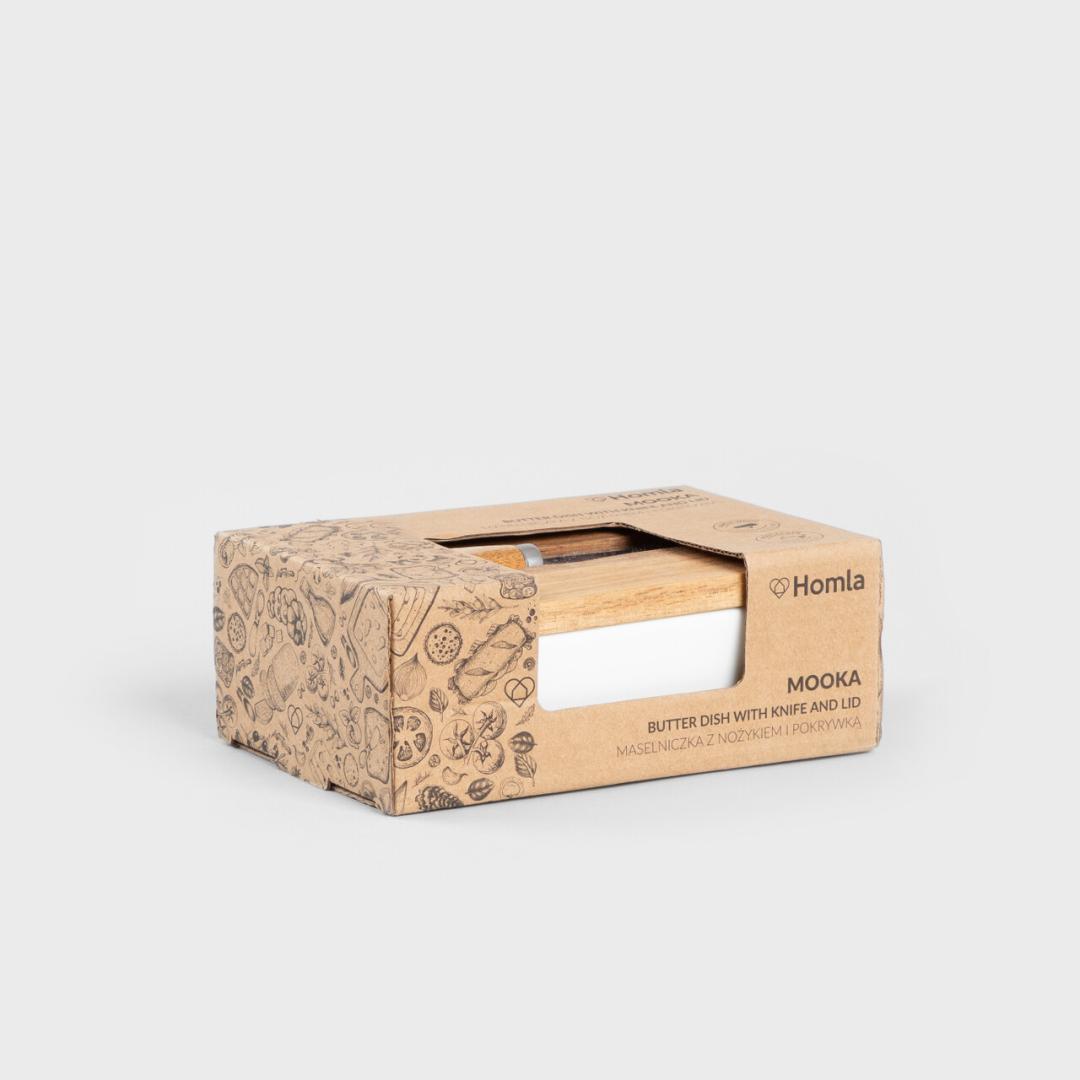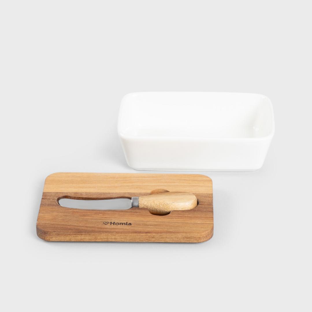 В интерьере вашей кухни не хватает блюда для масла? Запаситесь фарфоровым блюдом для масла с ножом и крышкой из акации MOOKA и подавайте масло в функциональной и красивой емкости! Она не только идеально подойдет для хранения продукта, но и прекрасно оформит вашу кухню. Она дополнит интерьеры в стиле арт-деко и даже в модерне.