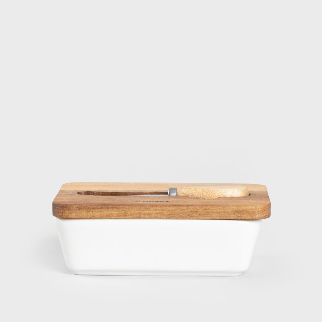 Миска для масла | MOOKA | фарфоровая с ножом и крышкой из акации белая | 11×16 см | ALL 967850