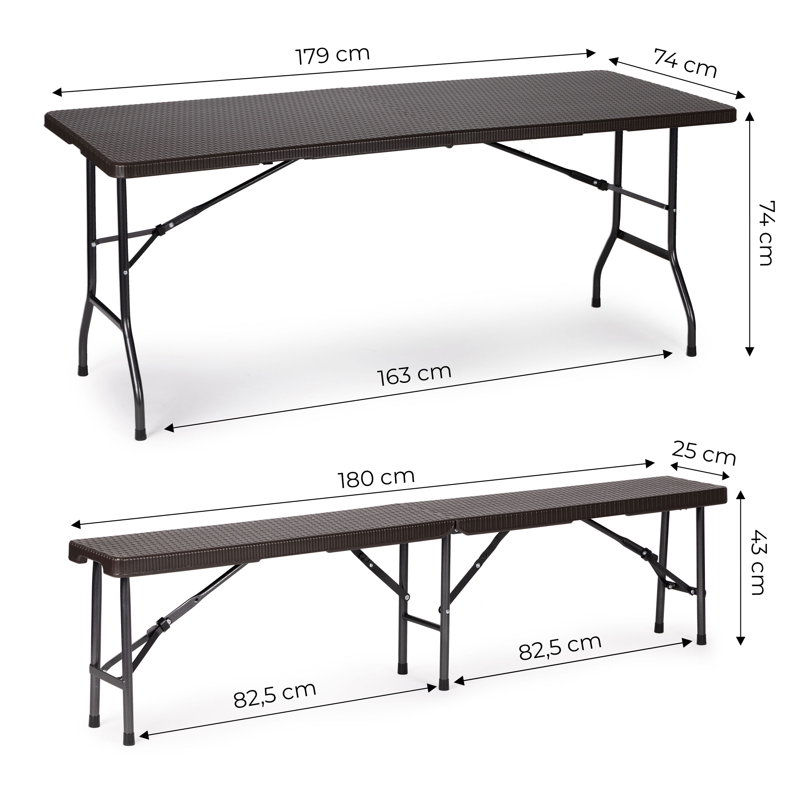 • Диаметр ножек: 25 мм (стол), 22 мм (скамья)