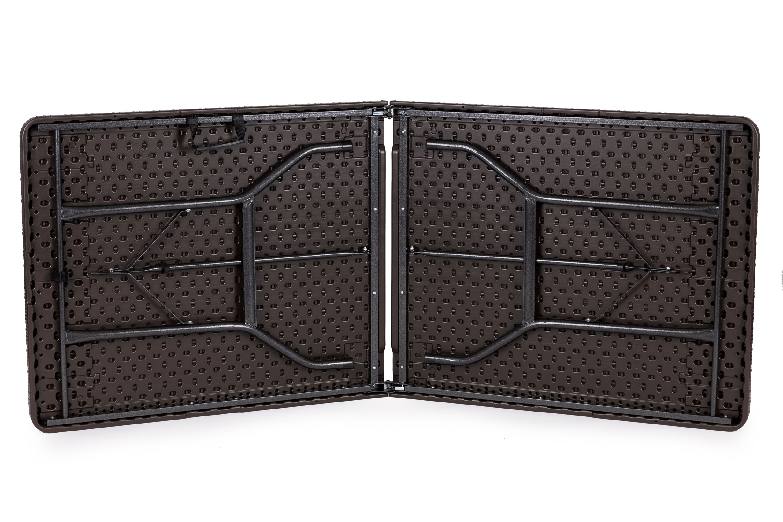 Элементы каркаса оснащены специальным замком, который предотвращает случайное складывание конструкции. Благодаря этому вы можете не беспокоиться о безопасности своих гостей, стол и скамейки всегда останутся устойчивыми.