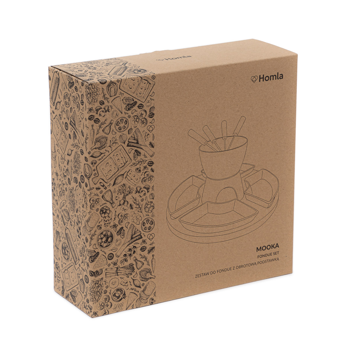 Набор HOMLA MOOKA, на котором вы подадите вкусное сырное фондю или сладкое шоколадное фондю. Во время романтического ужина на двоих, на праздничном званом ужине или на вечеринке для друзей вы удивите всех прекрасным и эффектно поданным блюдом.