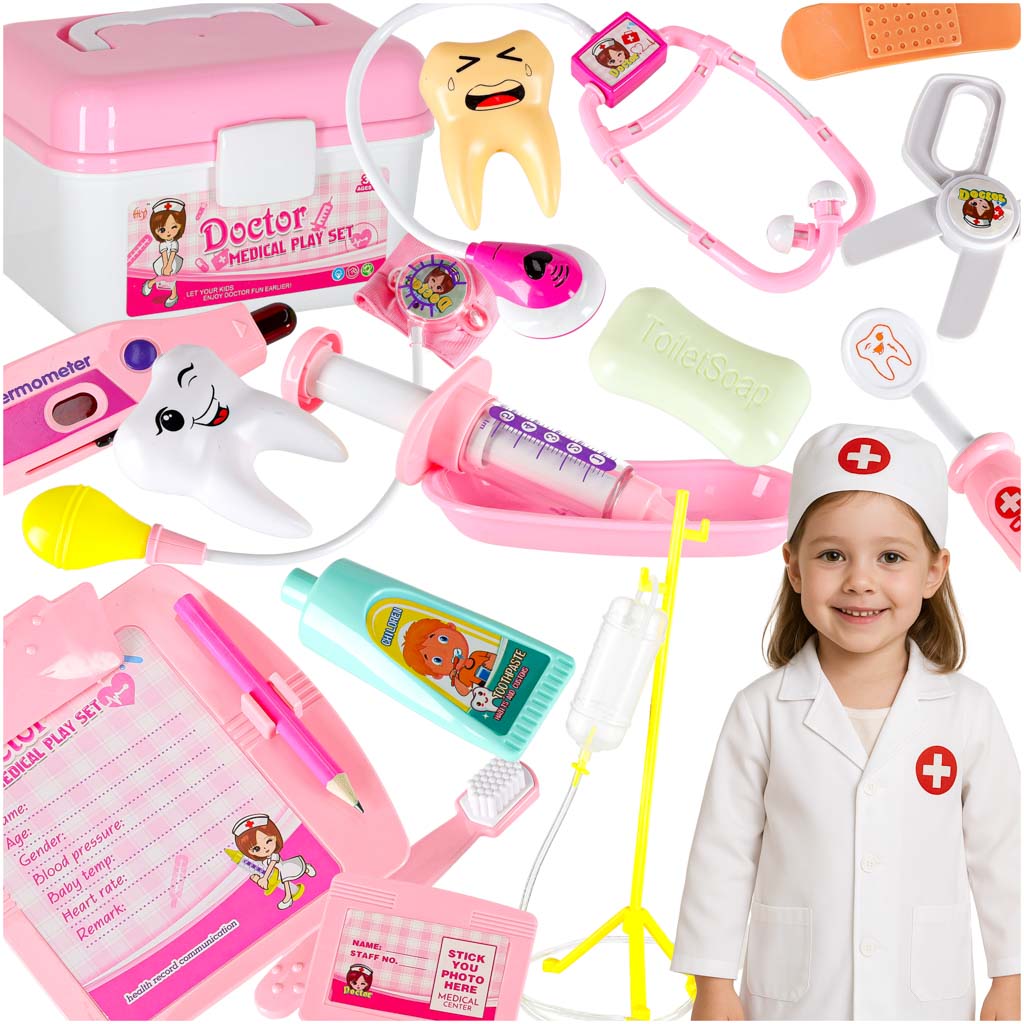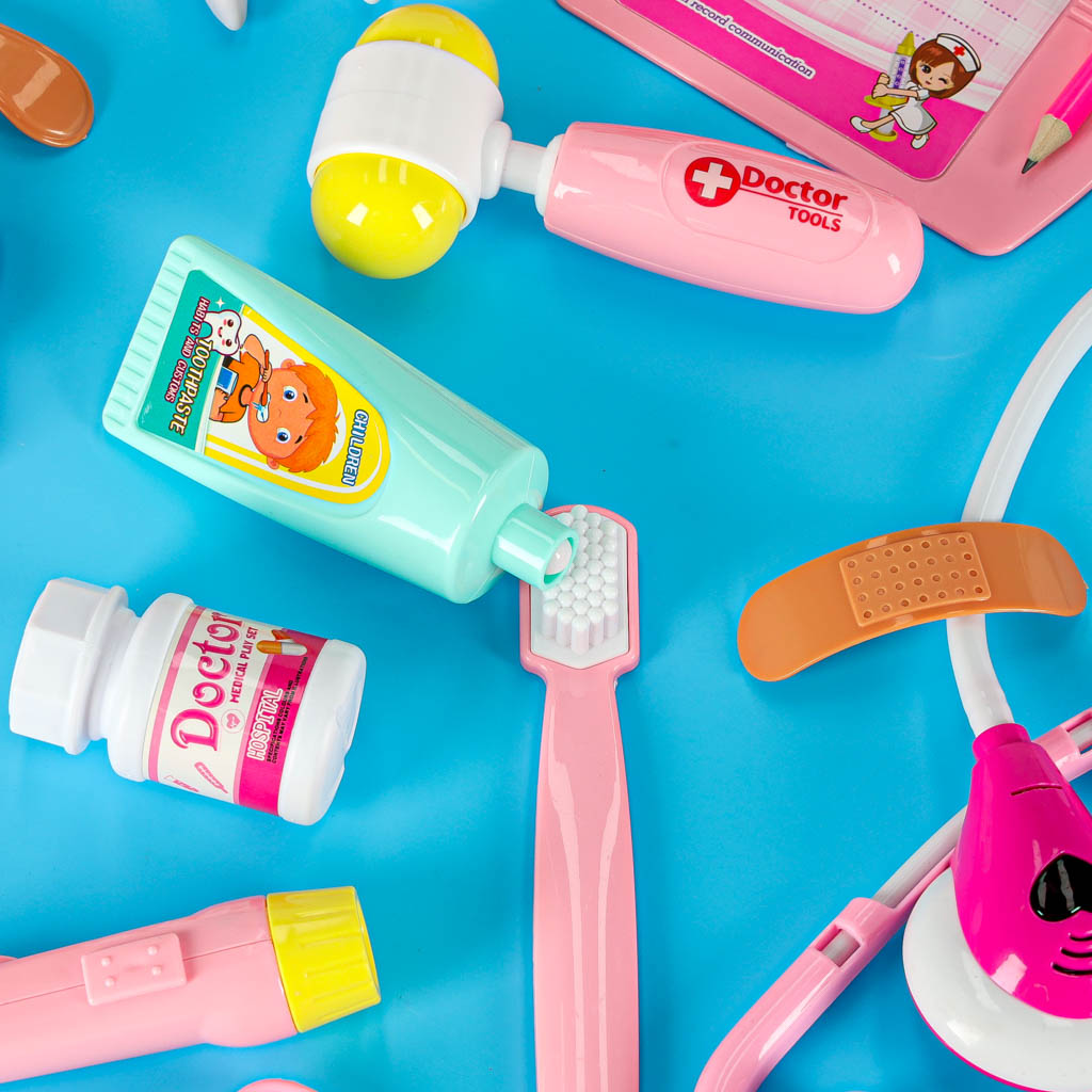 Игрушечный набор доктора — это опыт, который позволит вам в доступной форме объяснить ребенку, чем занимаются врачи и медсестры. Помимо прочего, ребенок сможет увидеть, как выглядит медицинский осмотр или осмотр стоматолога. Кроме того, это способ привить ребенку элементы профилактического ухода за здоровьем, такие как общая гигиена или чистка зубов.