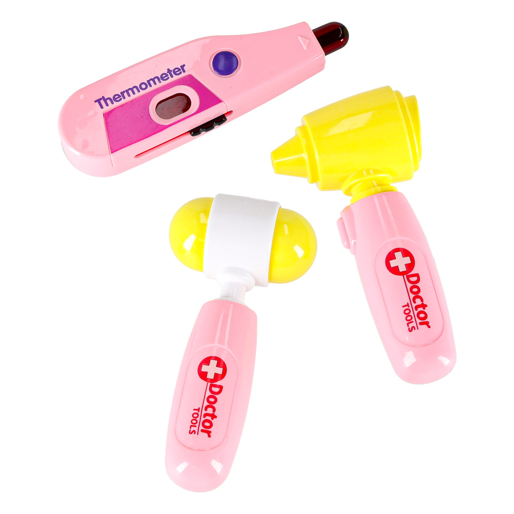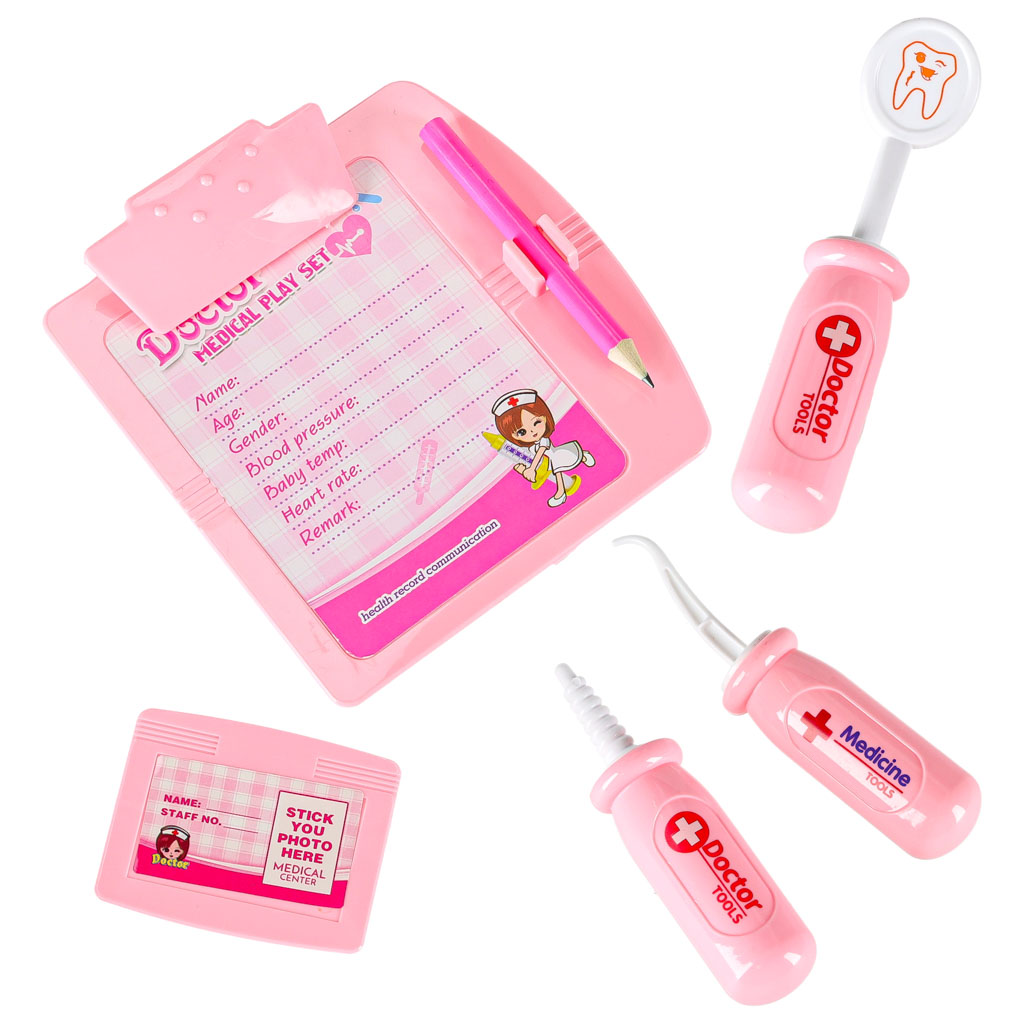 Милый набор маленького доктора с розово-белым туловищем предоставит ребенку множество возможностей для творческой игры. В наборе есть аксессуары для врача общей практики, стоматолога и медсестры.
