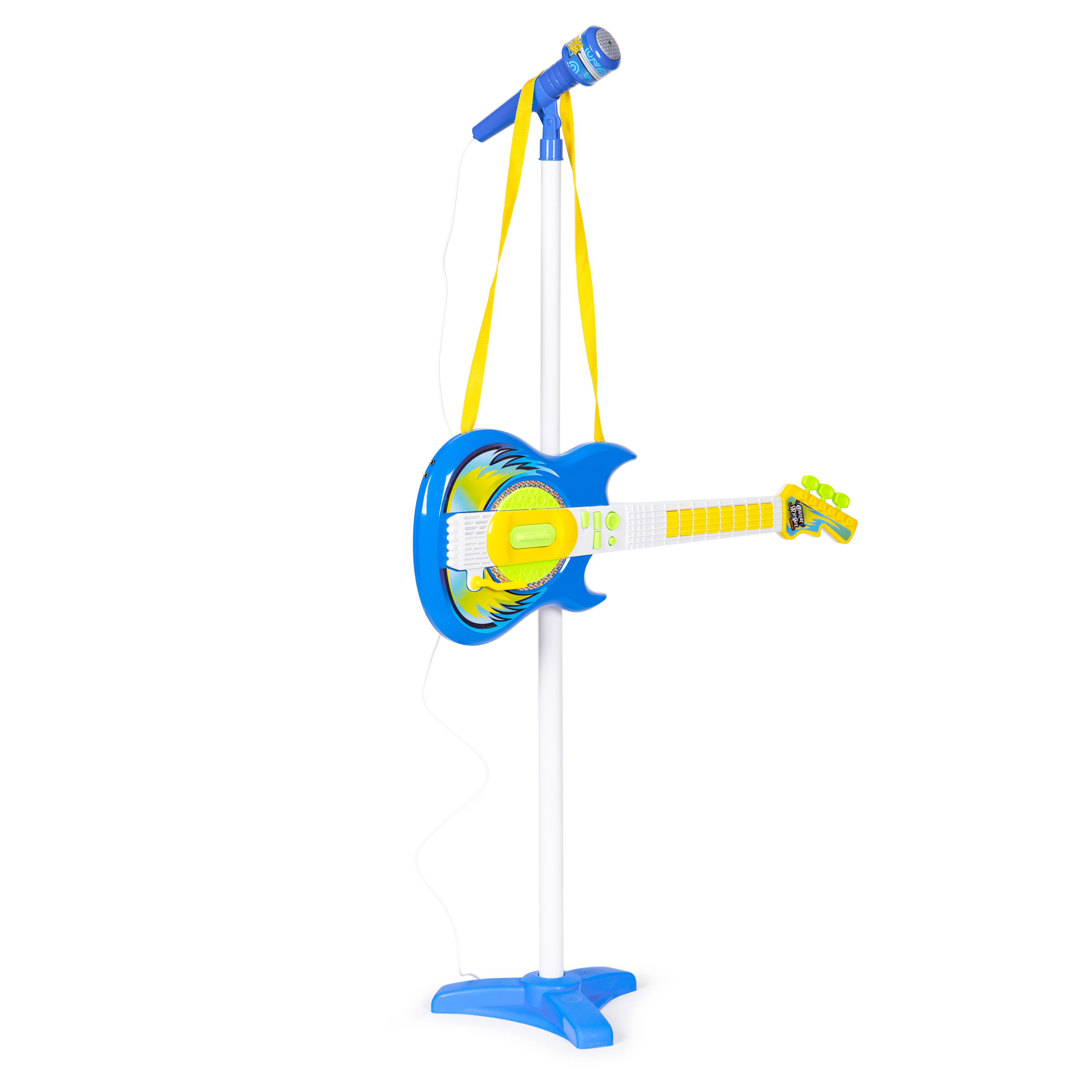 Набор из электрогитары и микрофона с подставкой для детей - совместим с MP3, синийНабор из электрогитары и микрофона с подставкой для детей — совместим с MP3, синий