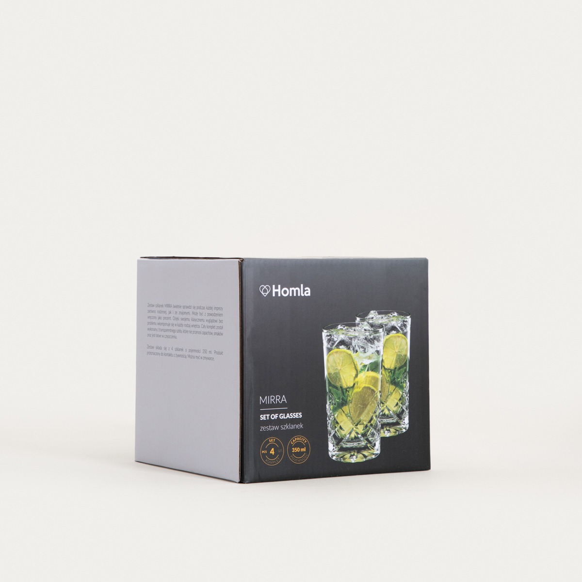 Высокие стаканы MIRRA подходят для подачи воды, соков, лимонадов, газированных и простых напитков. Универсальный объем 0,35 литра позволяет с комфортом использовать их ежедневно.