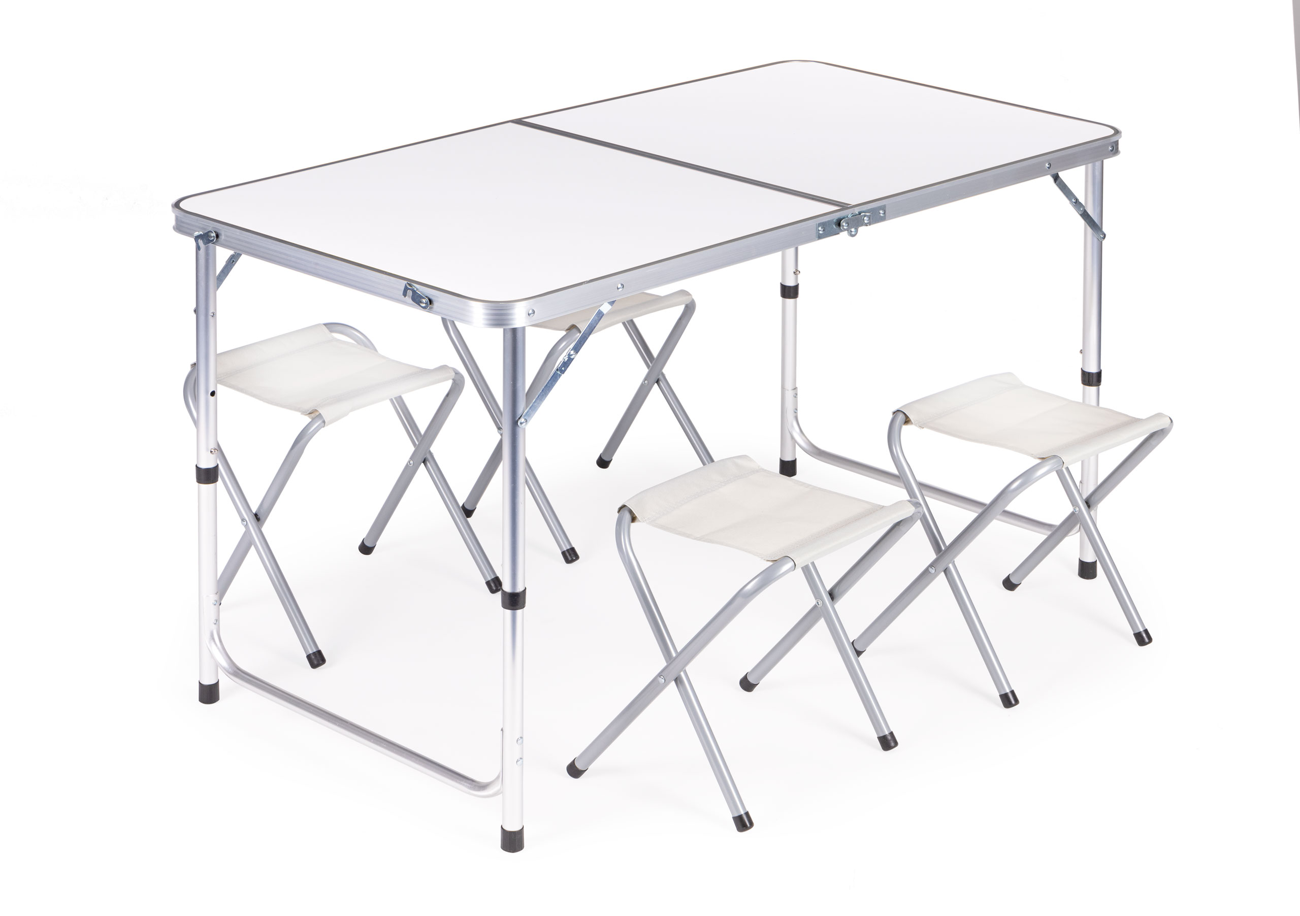 Набор столов для кемпинга - складной стол с 4 стульями белый MultiGardenНабор столов для кемпинга — складной стол с 4 стульями белый MultiGarden