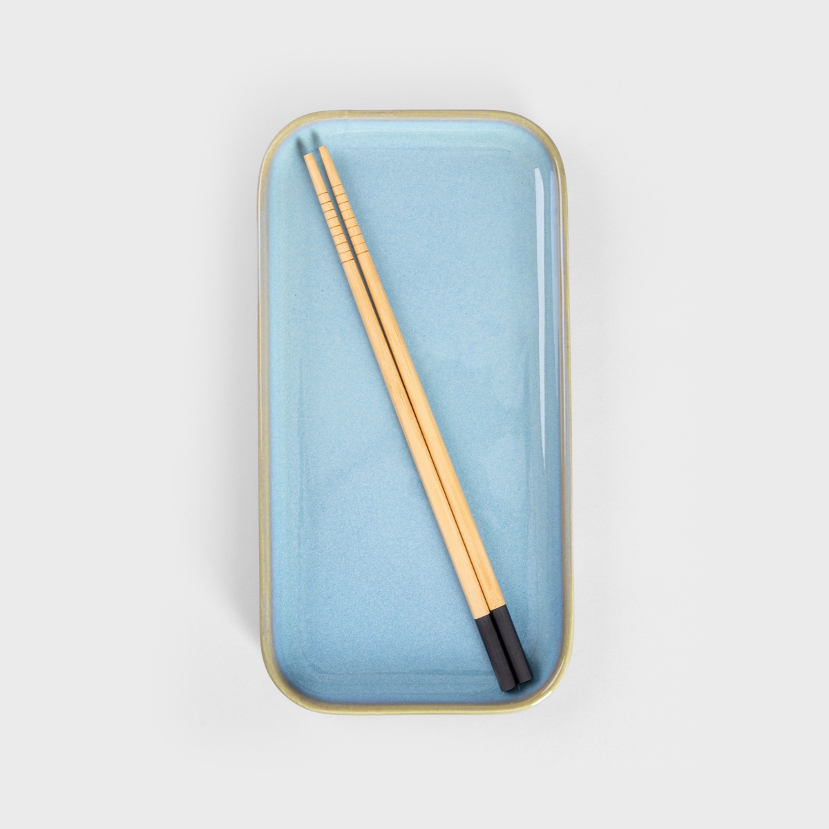 Тарелки и миски изготовлены из высококачественного керамогранита красивого бирюзового цвета. Палочки для еды, напротив, изготовлены из натурального бамбука.
