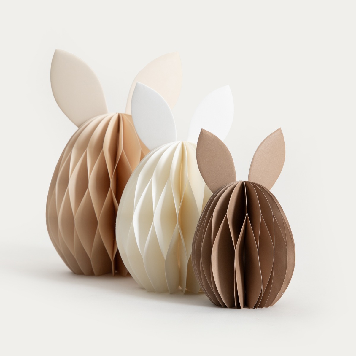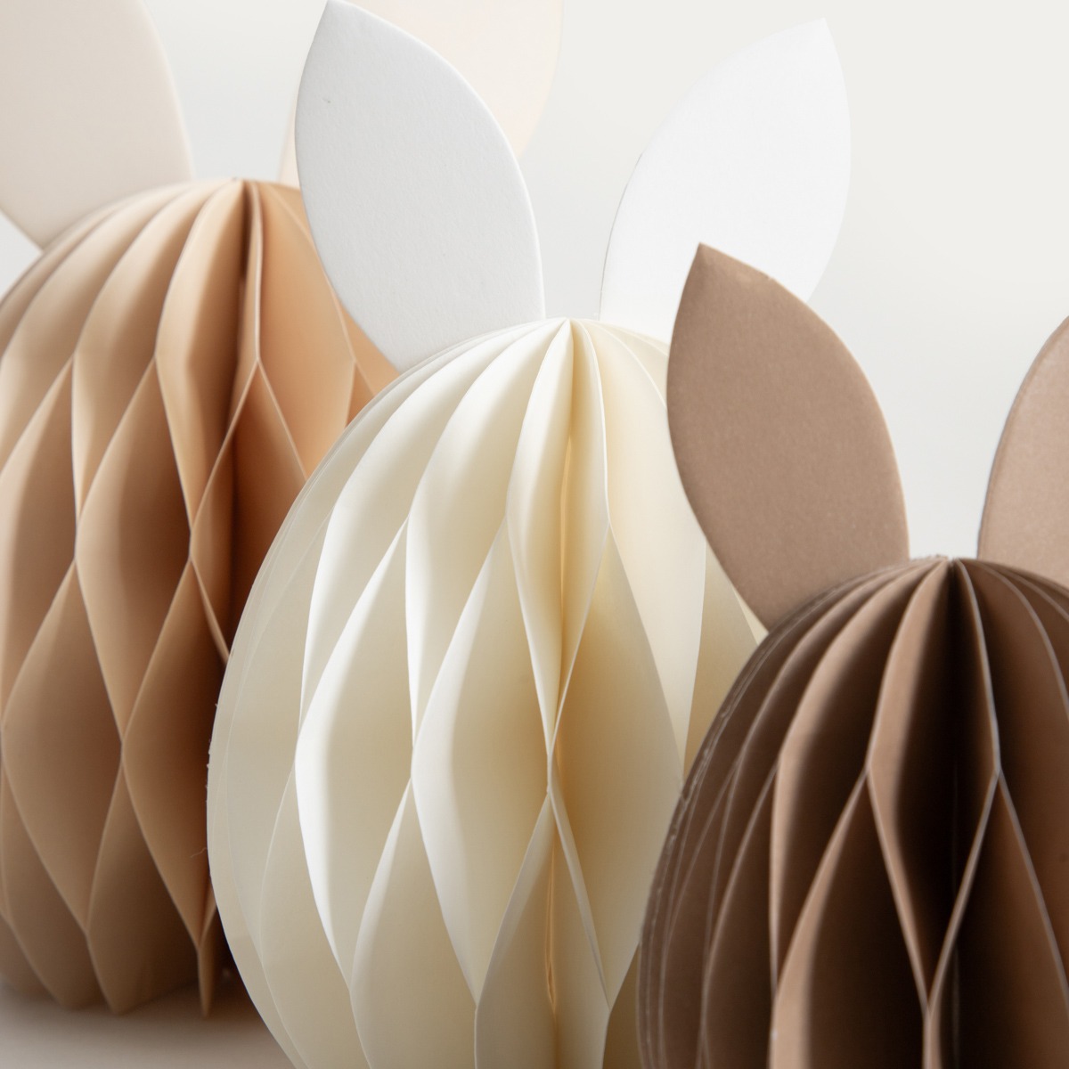 Если в вашем доме преобладают спокойные цвета и натуральные аксессуары, то бумажные пасхальные яйца PAPPER в оттенках кремового, бежевого и коричневого идеально впишутся в эту эстетику. Их пространственная форма привлекает внимание своей тонкой текстурой, а фетровые ушки придают украшениям немного игривый, праздничный оттенок. Эти украшения создают весеннюю атмосферу без избытка цвета и позволяют создать гармоничную композицию на столе, комоде или в витрине.