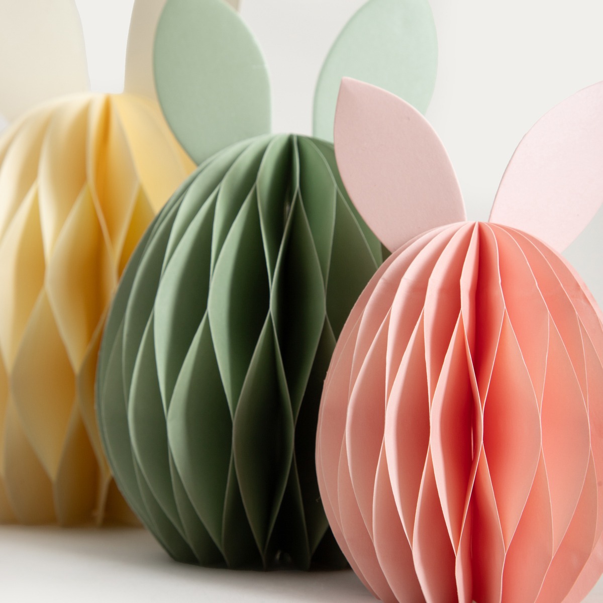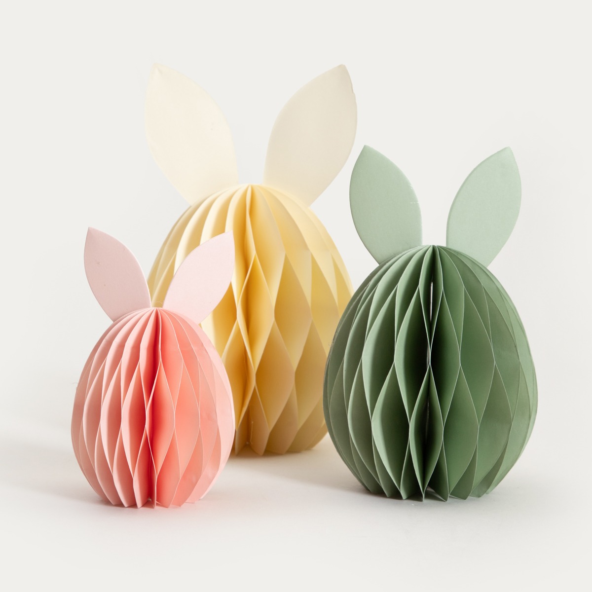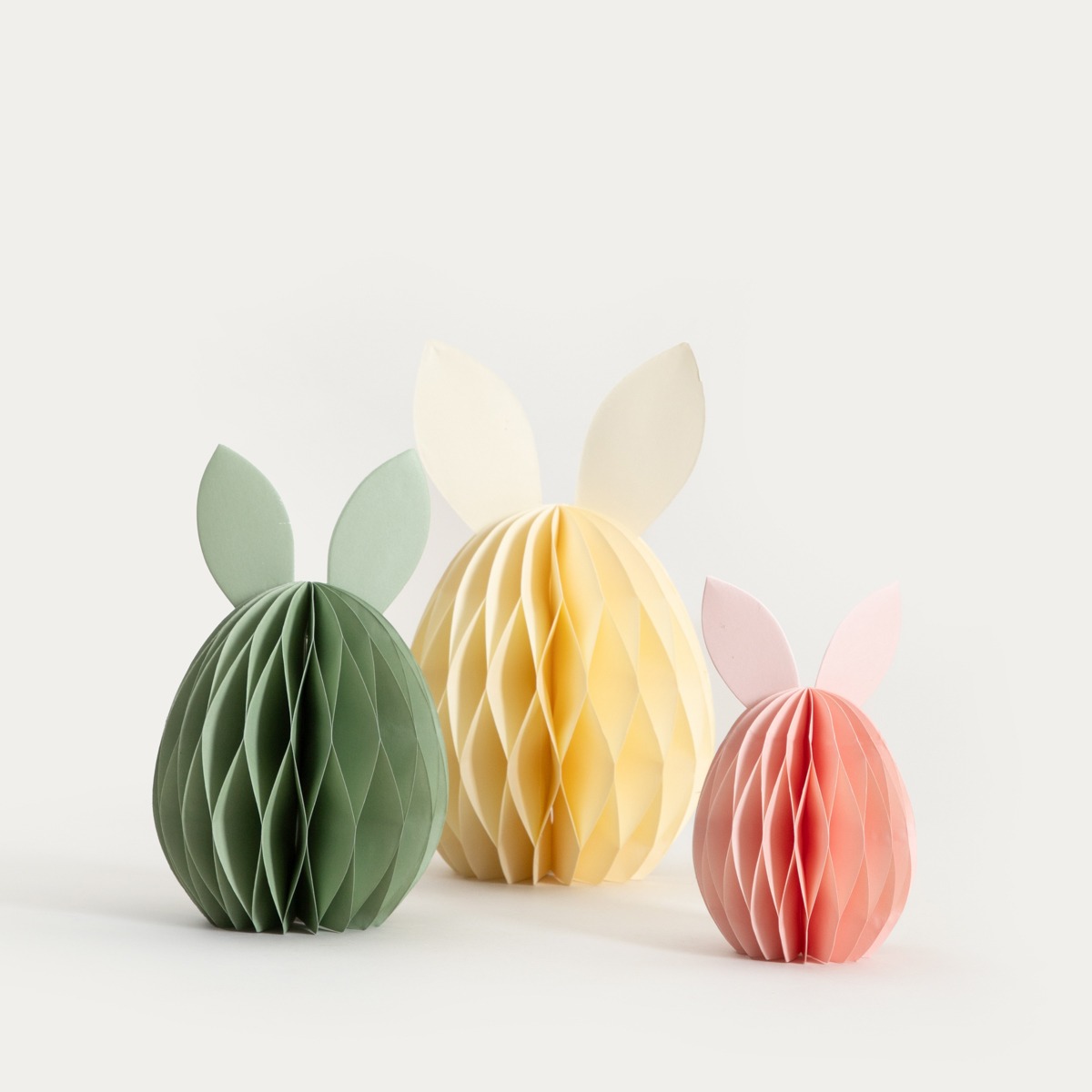 Весна в доме начинается с деталей, которые привлекают внимание и создают радостное настроение. Бумажные пасхальные яйца PAPPER в пастельных оттенках зеленого, желтого и розового цветов радуют своей легкой складчатой формой. Характерные ушки придают им игривый, праздничный характер. Эти украшения сразу создают уютную атмосферу и прекрасно смотрятся на комоде, столе или в витрине.