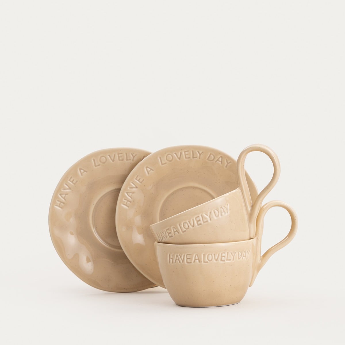 - Набор из 2 чашек с практичными блюдцами теплого бежевого оттенка