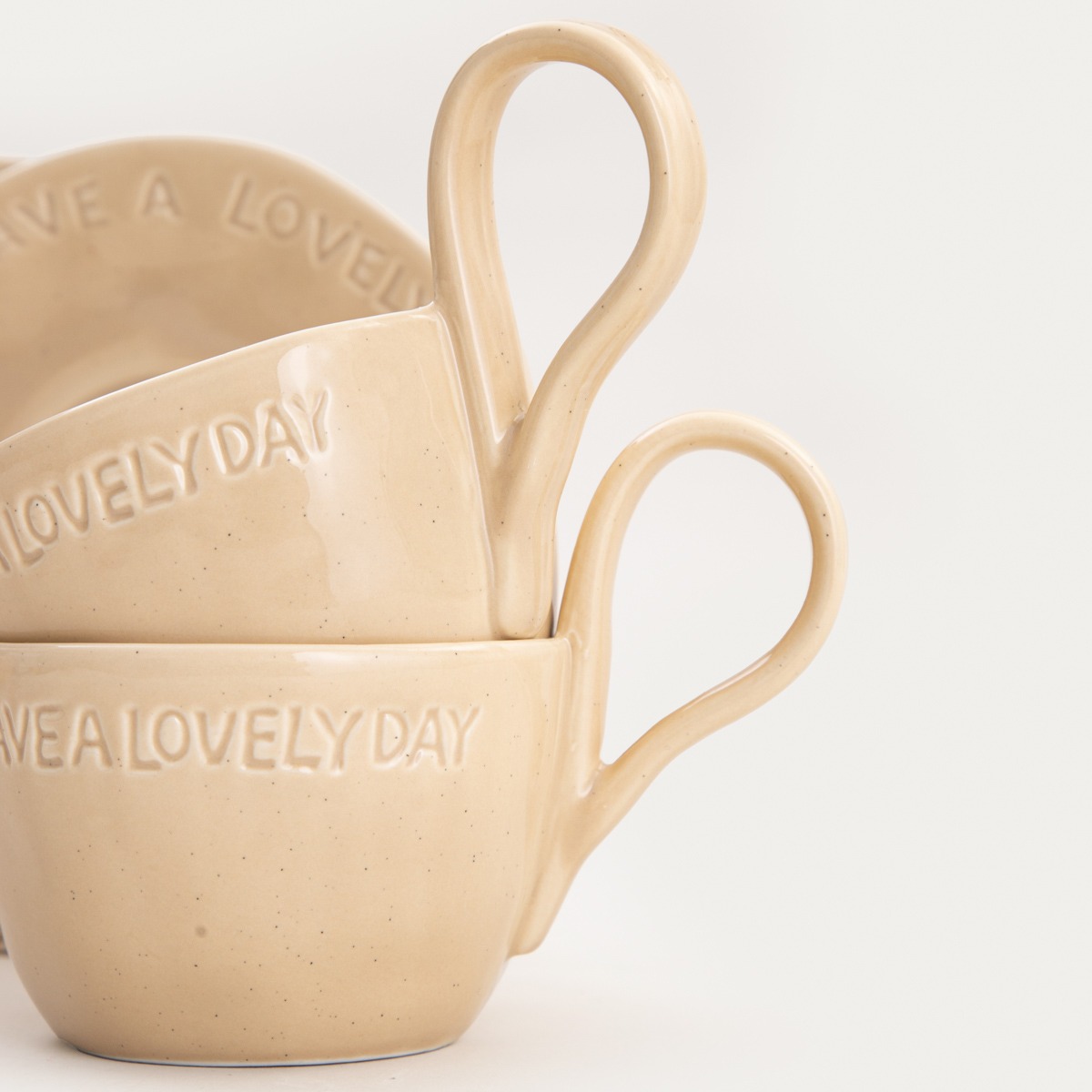 Утренний кофе или послеобеденный эспрессо вкуснее, когда они подаются в красивой обстановке. Набор чашек ISERNIA в теплом бежевом цвете привнесет спокойствие и уют на любую кухню. Тонкая надпись и слегка неправильная форма делают каждый глоток уникальным.