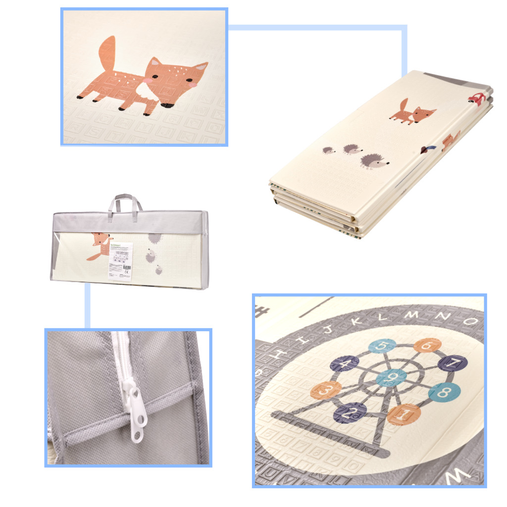 Развивающий коврик из вспененного материала идеально подходит для обустройства игровой зоны, а также в качестве ковра в комнате ребенка. Он двусторонний — с одной стороны холмы и животные, а с другой — извилистые улицы, идеальные для игры с любимыми машинками. Толщина коврика в 1 сантиметр не только обеспечивает комфортное место для игр, но и защищает от холодного пола и делает обучение ходьбе более безопасным. Коврик очень практичен — он легко складывается и раскладывается, поэтому занимает минимум места, когда не используется.